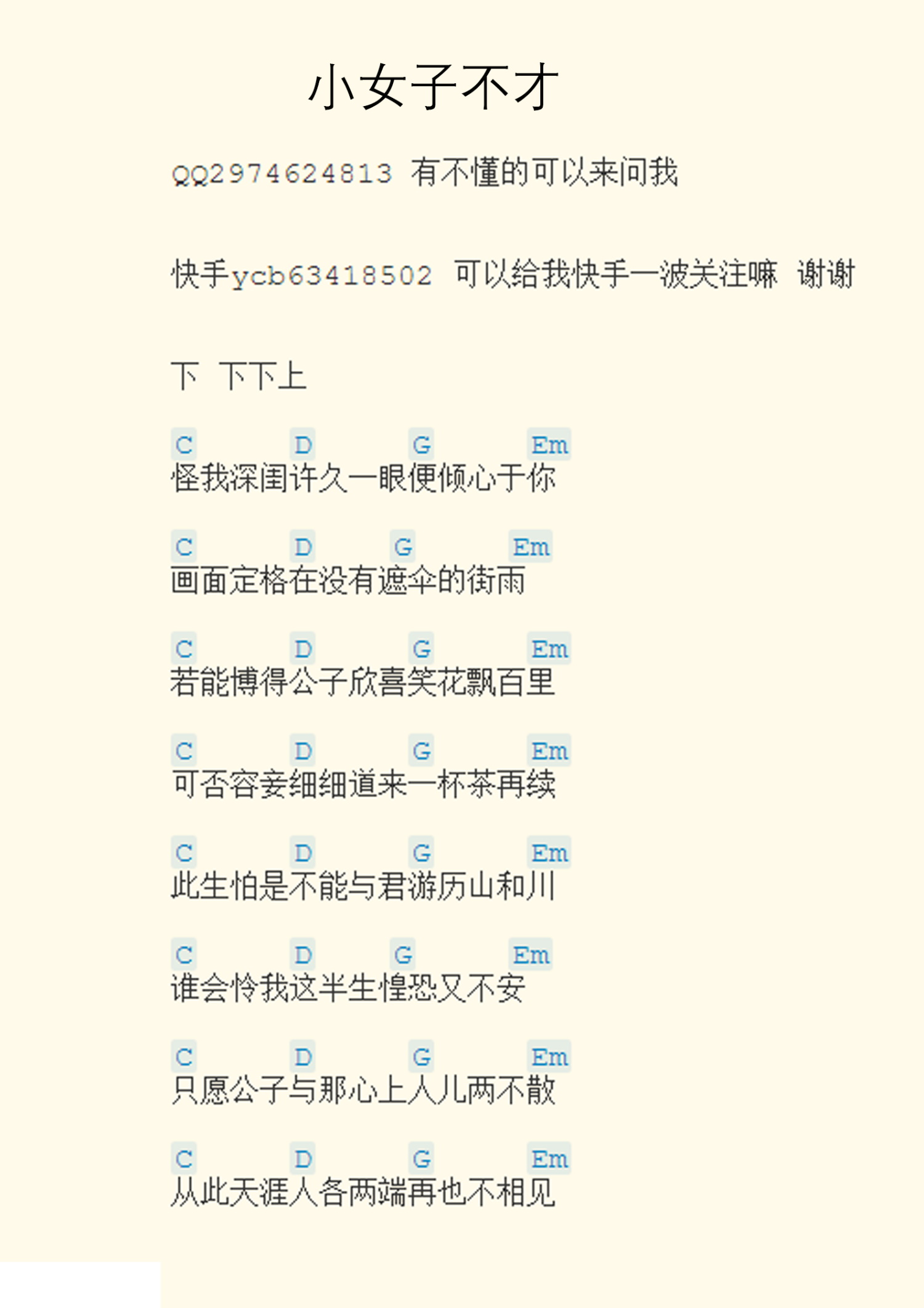 小女子不才吉他谱 - 吉他弹唱谱 - 和弦谱