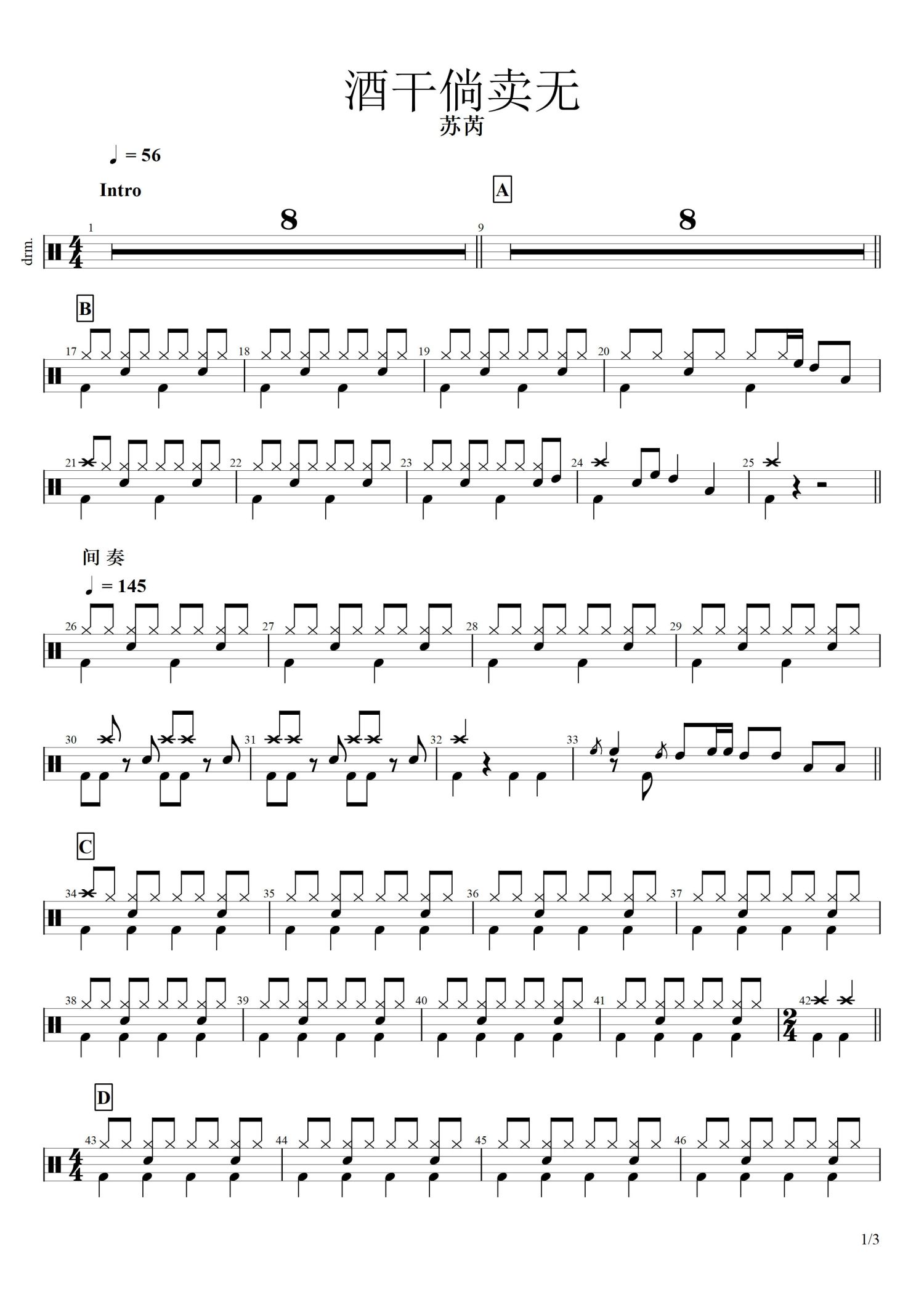 • 酒干倘卖无鼓谱 - 苏芮 - 架子鼓谱第1张