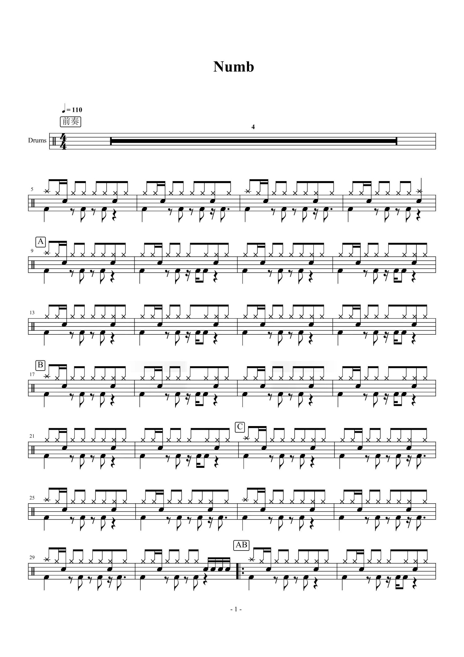 • Numb鼓谱 - Linkin Park - 架子鼓谱第1张