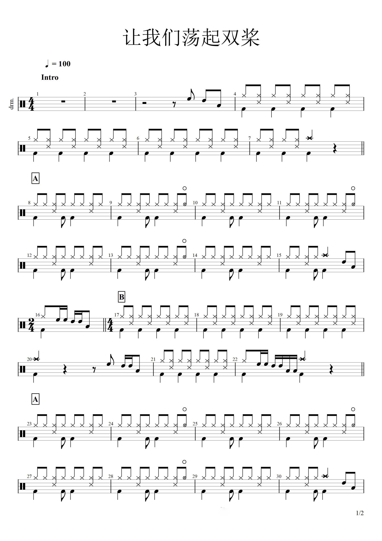 • 让我们荡起双桨鼓谱 - 刘慧芳 - 架子鼓谱第1张
