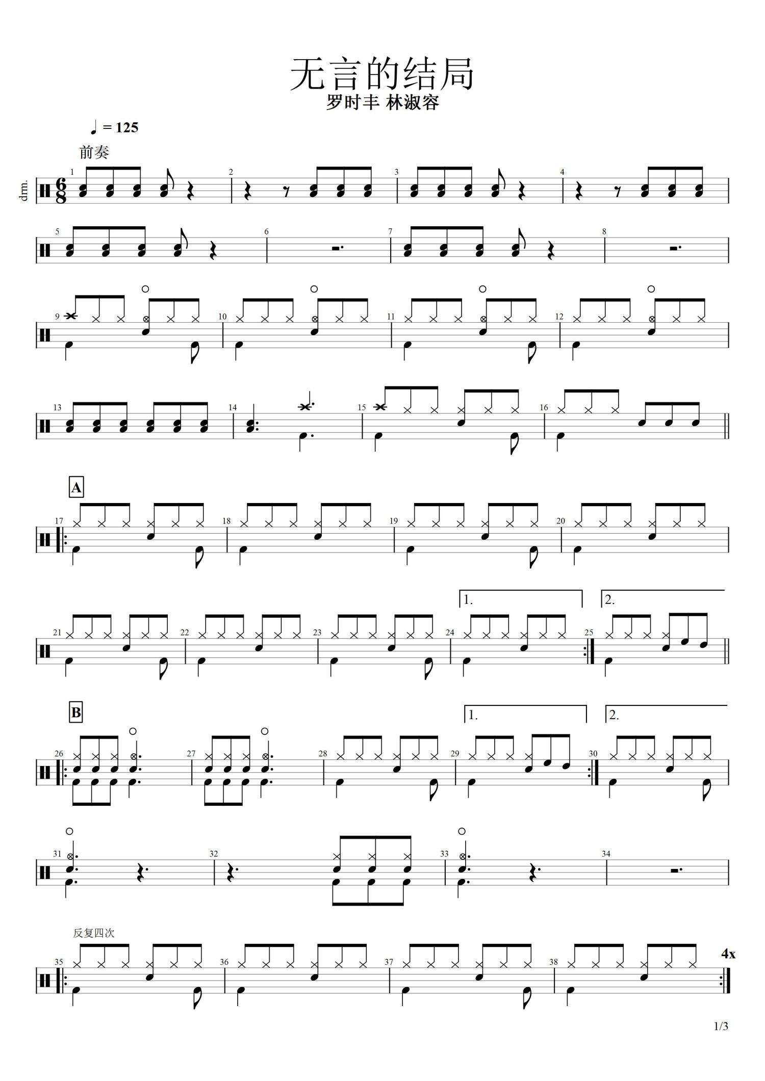 • 无言的结局鼓谱 - 罗时丰/林淑容 - 架子鼓谱第1张