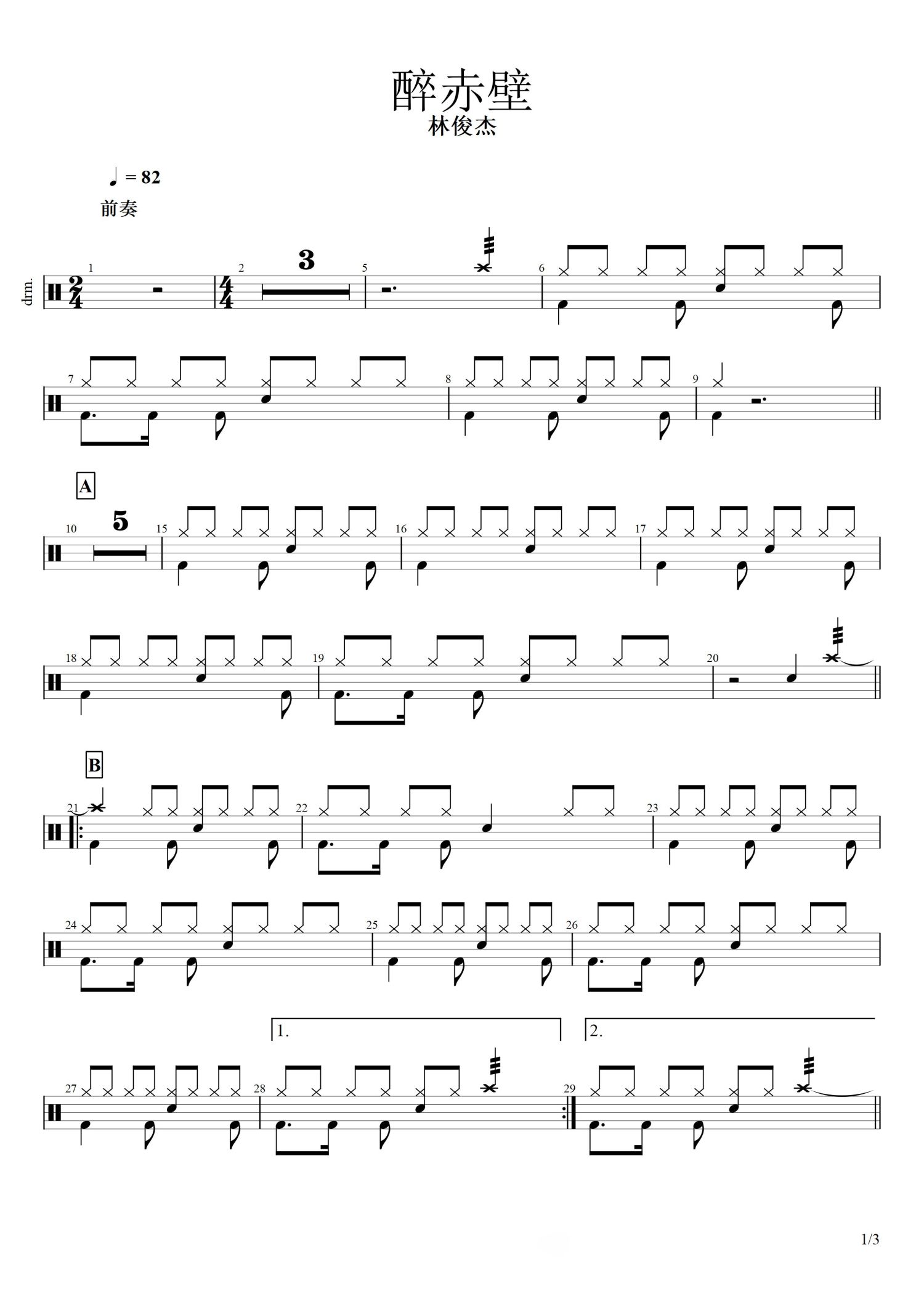 • 醉赤壁鼓谱 - 林俊杰 - 架子鼓谱第1张