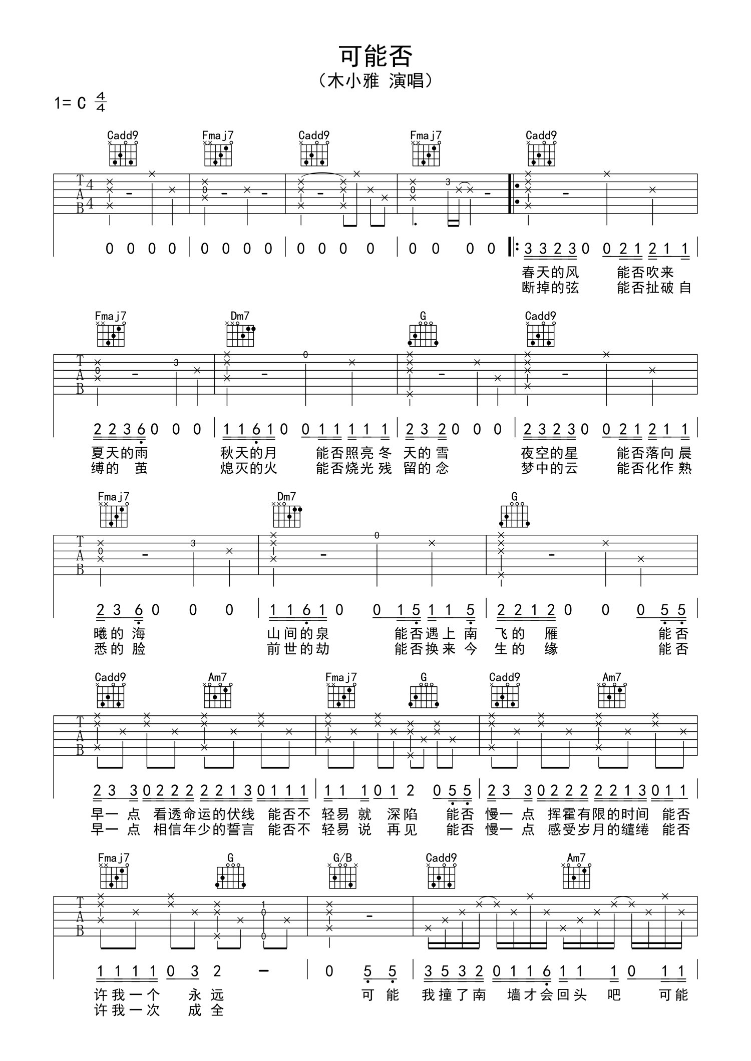 • 可能否吉他谱 - 木小雅 - C调吉他弹唱谱第1张
