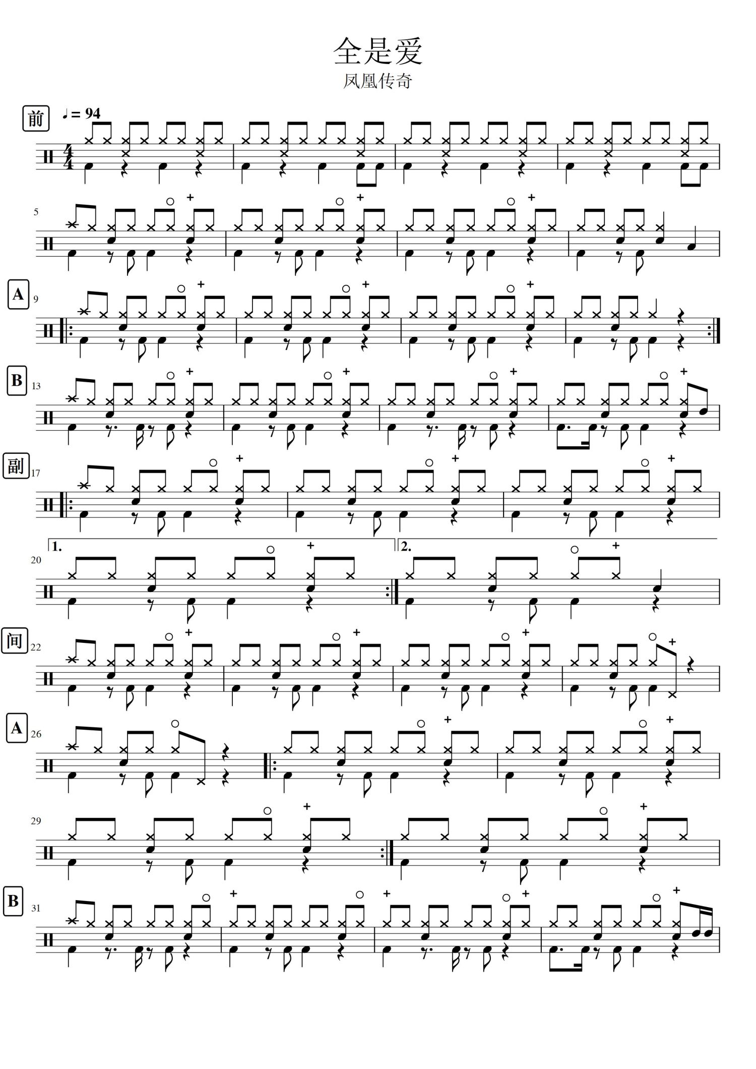 • 全是爱鼓谱 - 凤凰传奇 - 架子鼓谱第1张