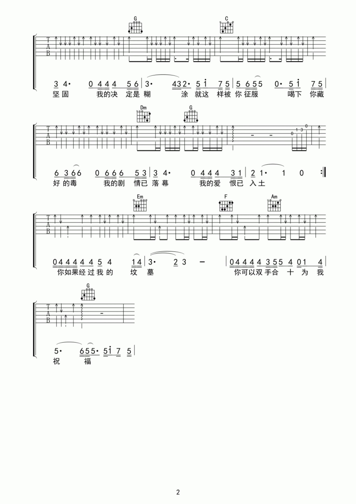 吉他弹唱C调来源:吉他社826 浏览2019-06-08 23:01发布图谱共2页
