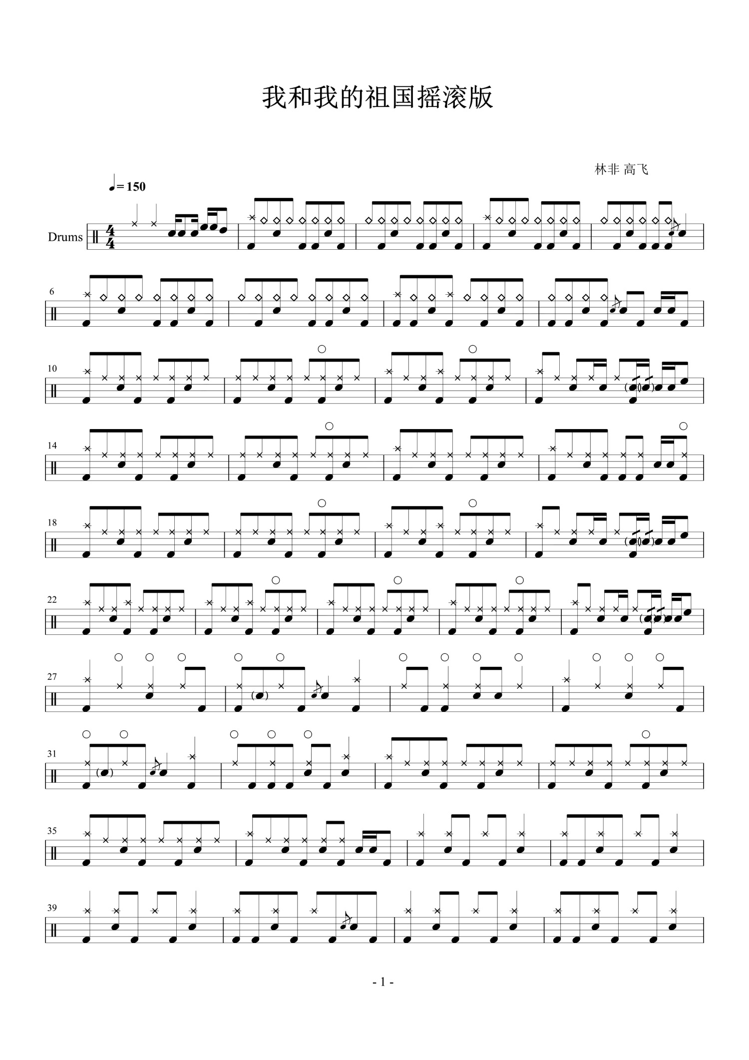 • 我和我的祖国鼓谱 - 林非/高飞 - 架子鼓谱 - 摇滚版第1张