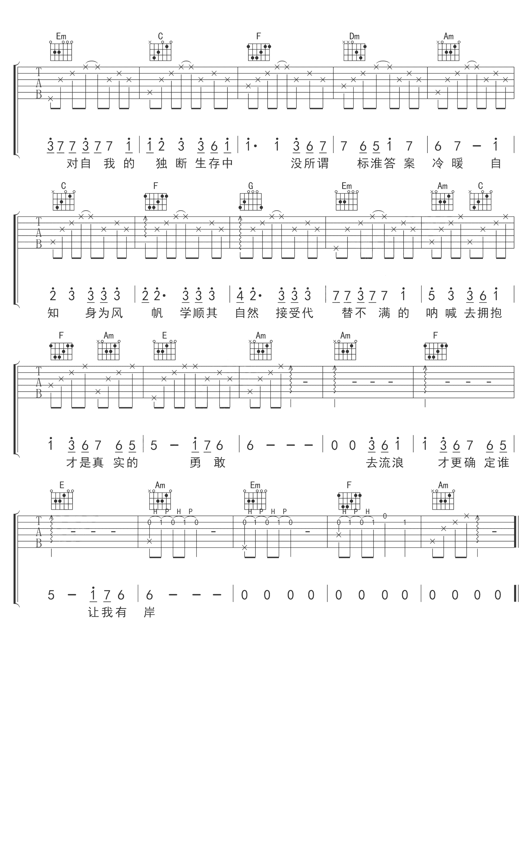 当前位置:琴谱网>吉他弹唱>身为风帆