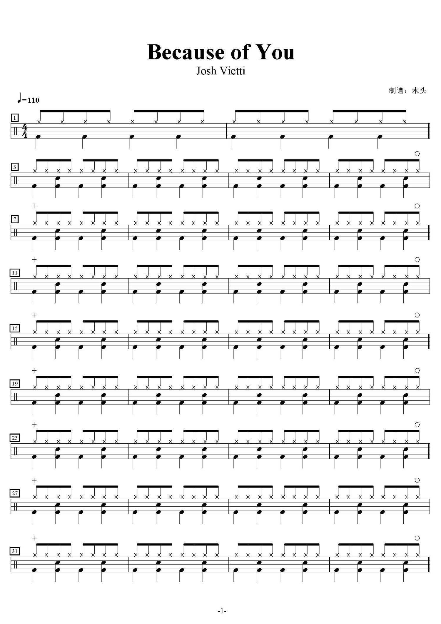 Because of You鼓谱 - Josh Vietti - 架子鼓谱