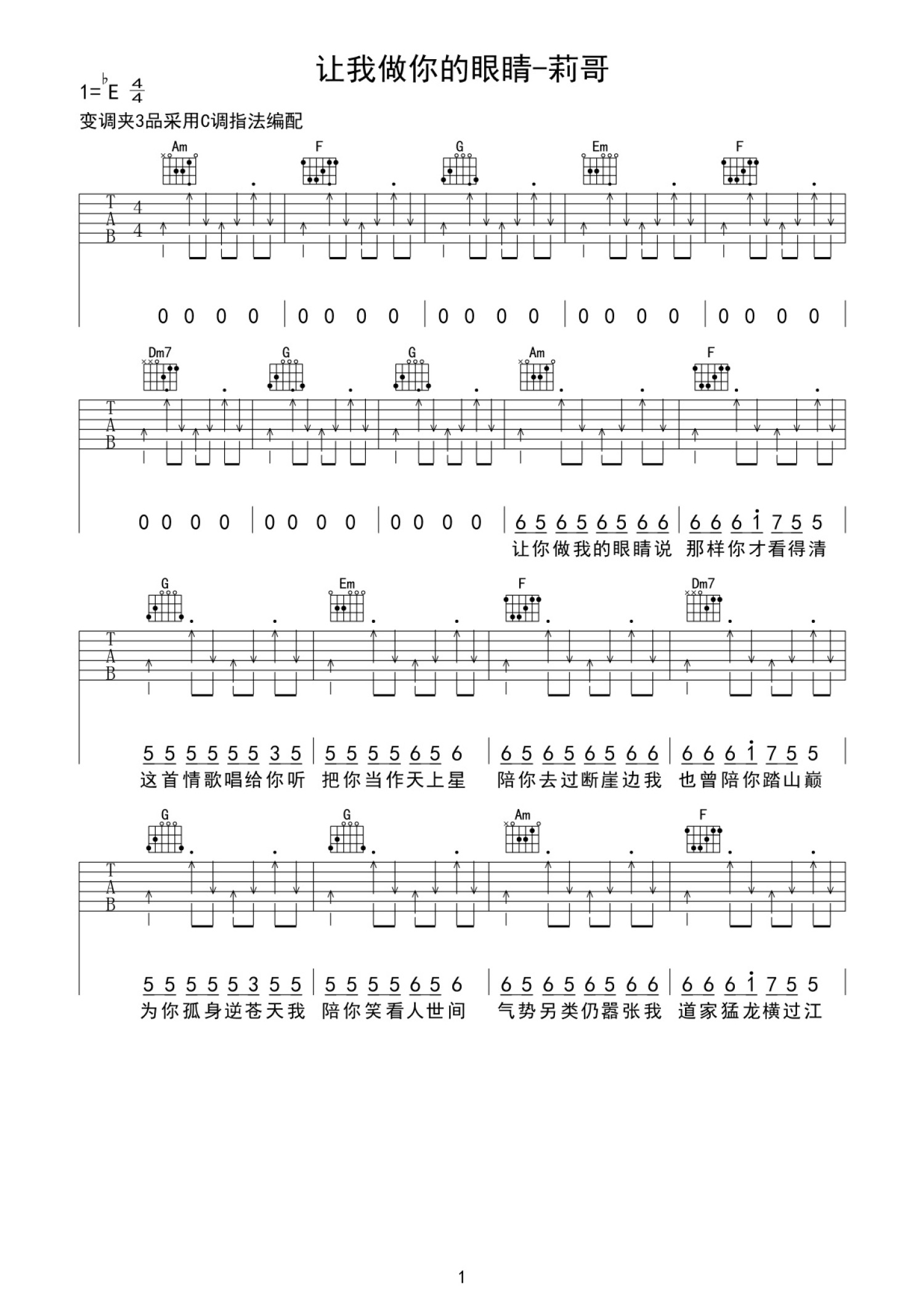 让我做你的眼睛吉他谱 - 莉哥 - C调吉他弹唱谱