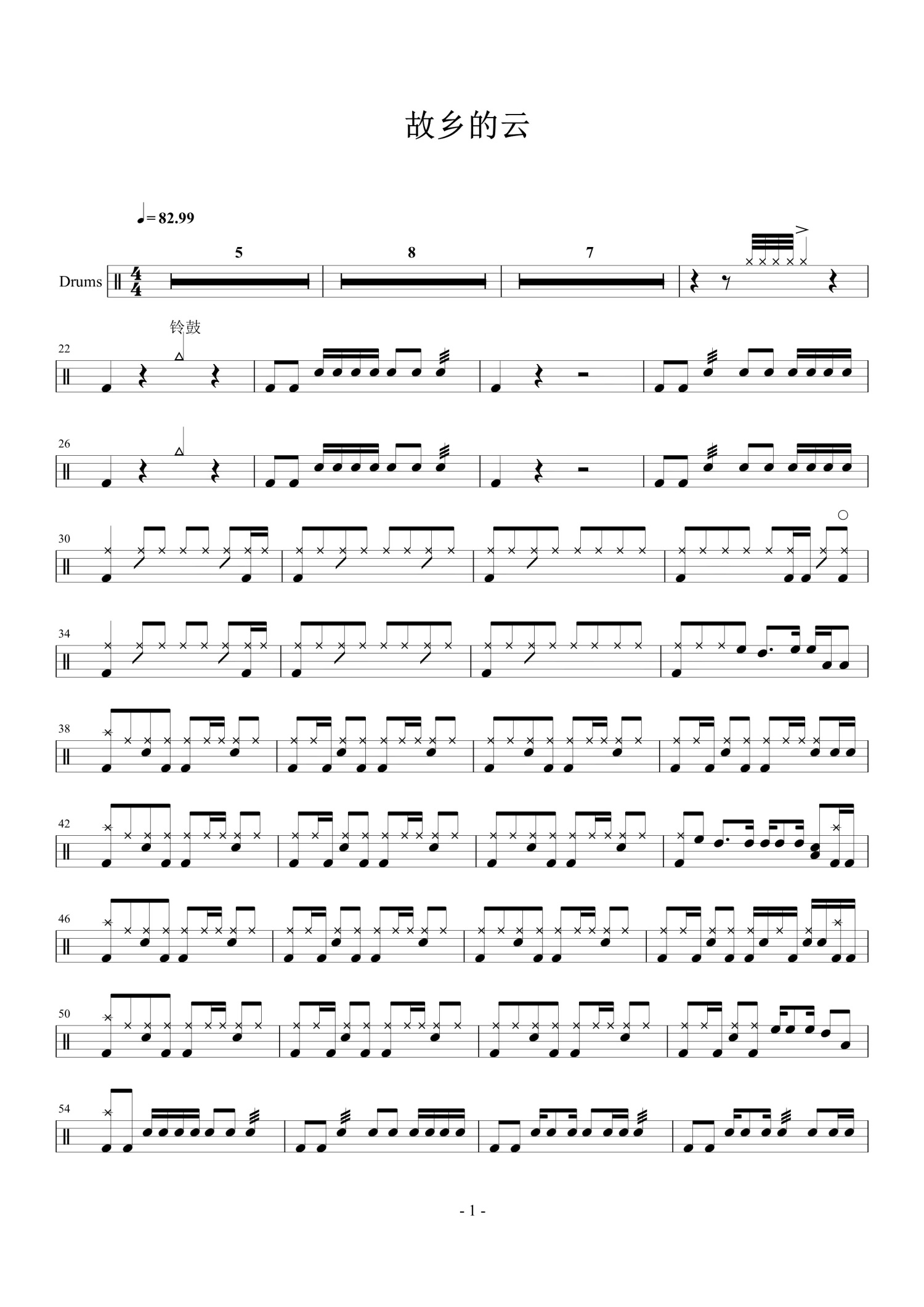 当前位置:琴谱网>架子鼓谱>故乡的云