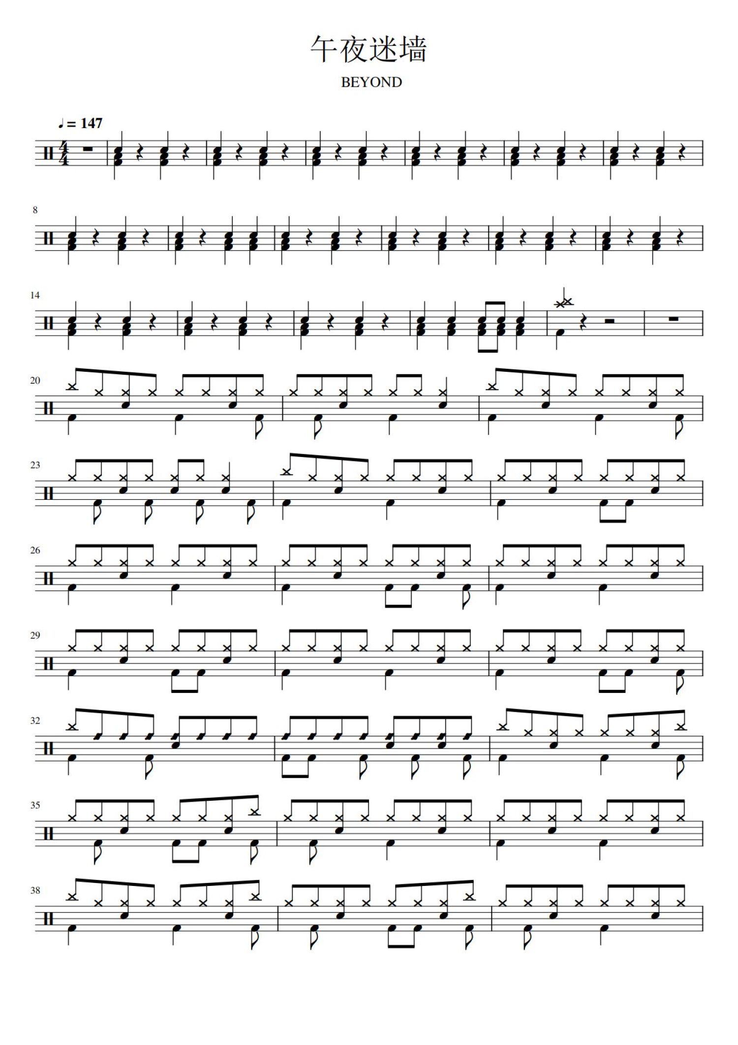• 午夜迷墙鼓谱 - Beyond - 架子鼓谱第1张