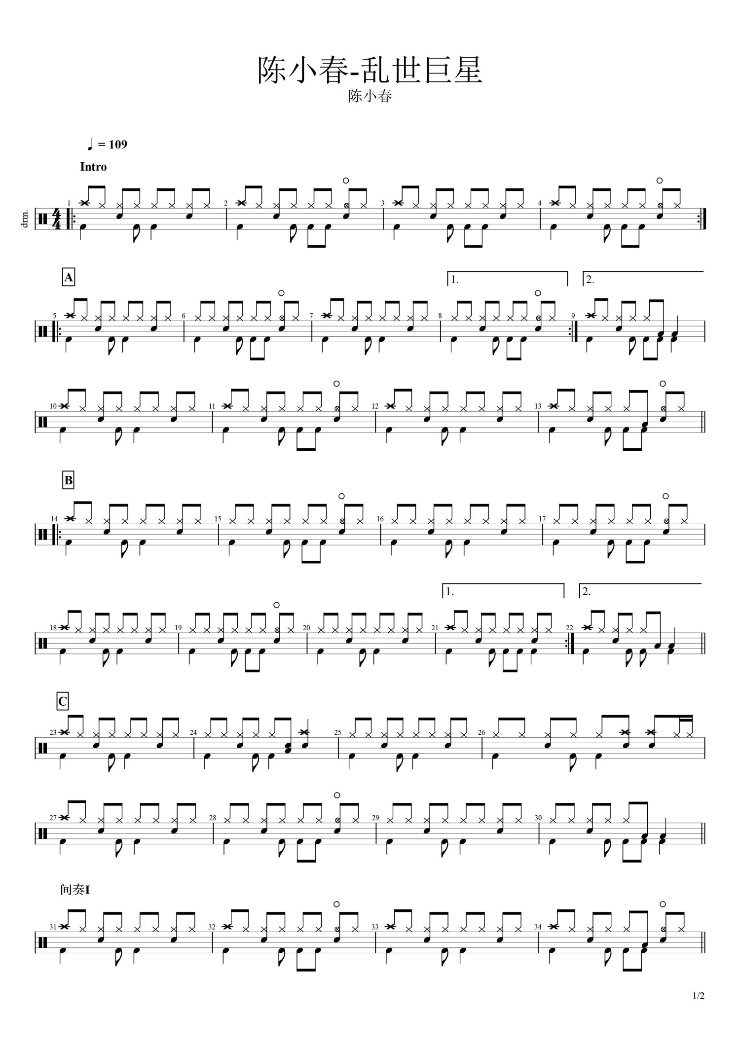 • 乱世巨星鼓谱 - 陈小春 - 架子鼓谱第1张