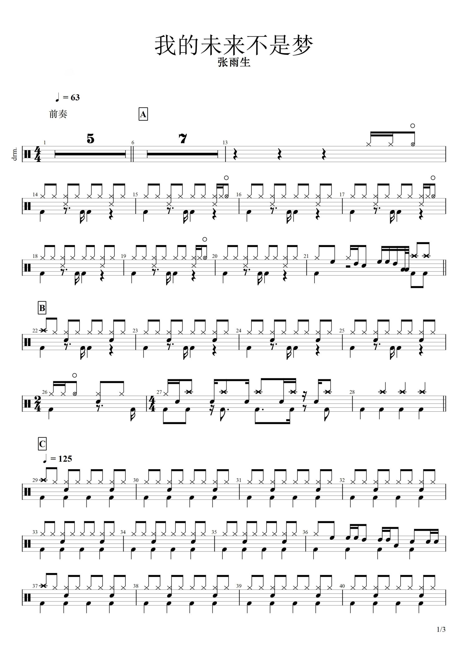 • 我的未来不是梦鼓谱 - 张雨生 - 架子鼓谱第1张