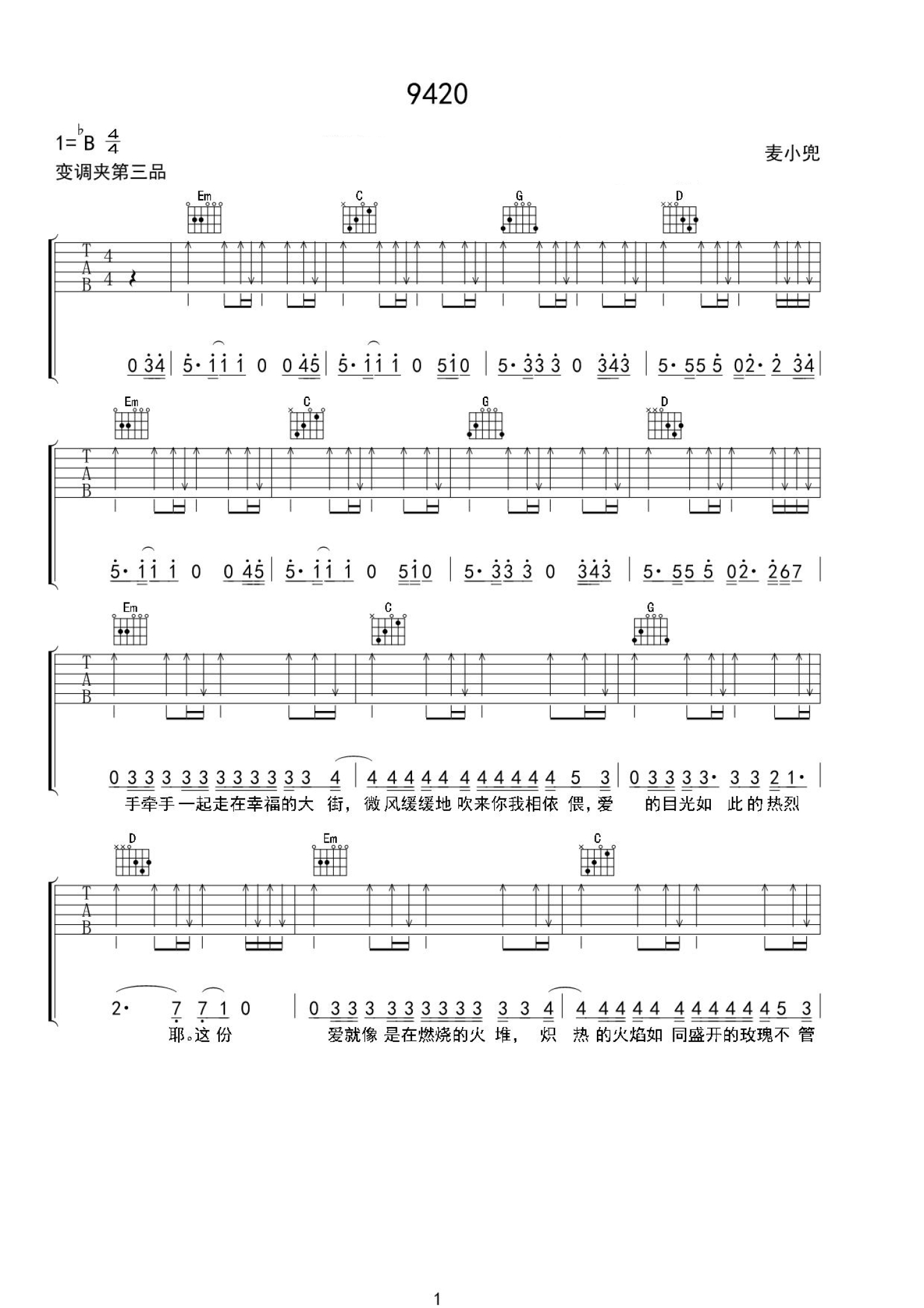 9420吉他谱 - 麦小兜 - 吉他弹唱谱
