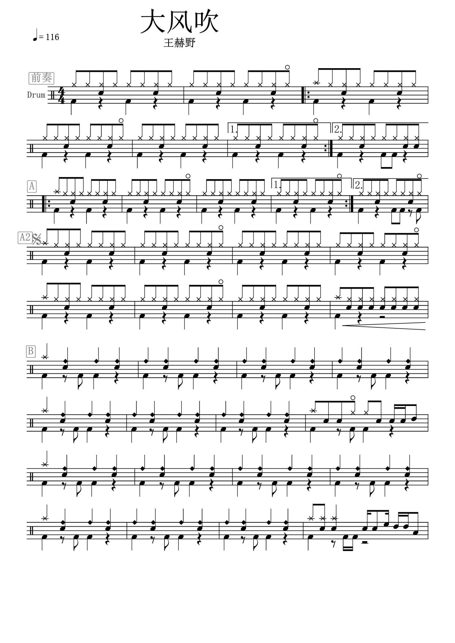 • 大风吹鼓谱 - 王赫野 - 架子鼓谱第1张