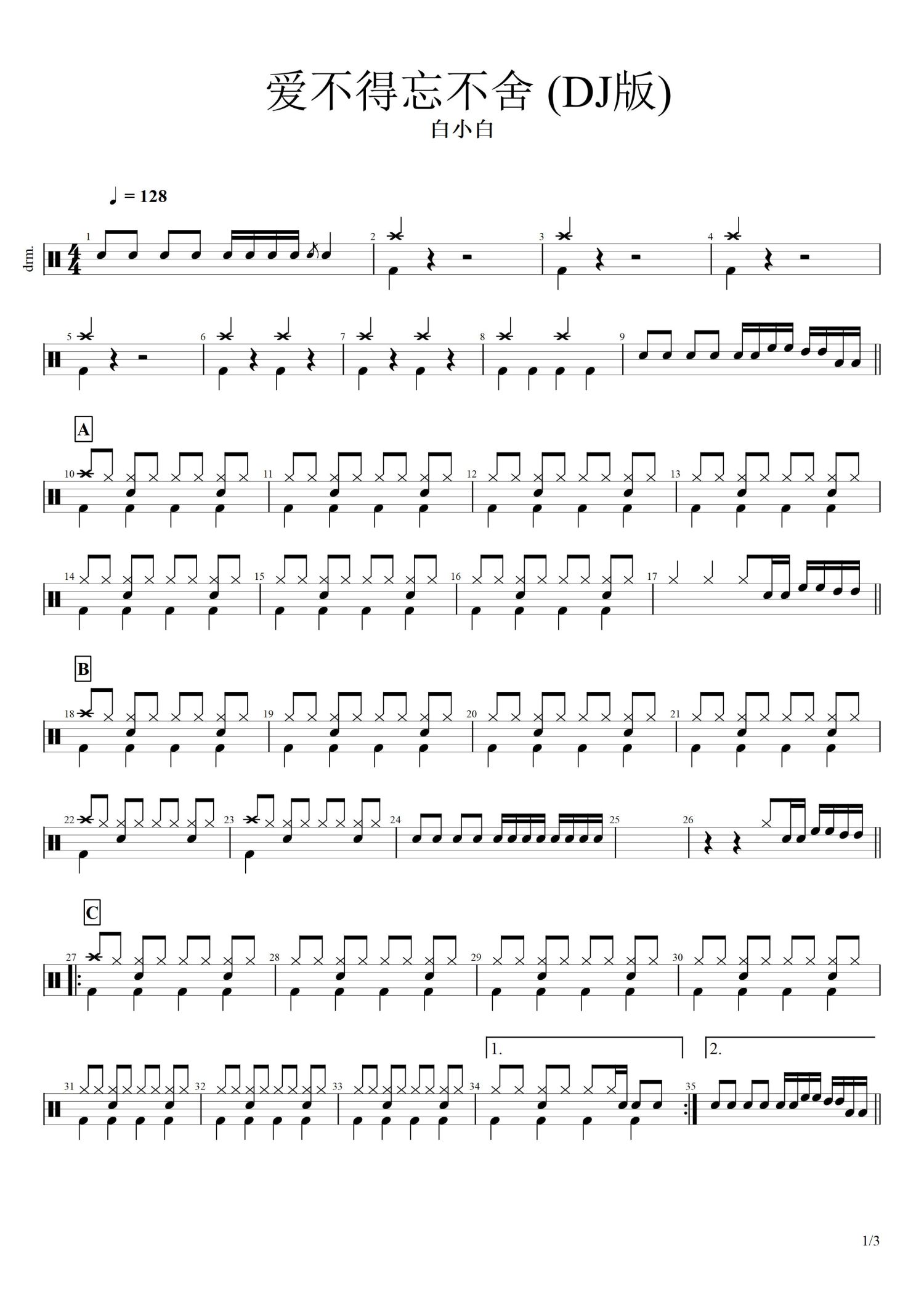 • 爱不得忘不舍鼓谱 - 白小白 - 架子鼓谱 - DJ版第1张