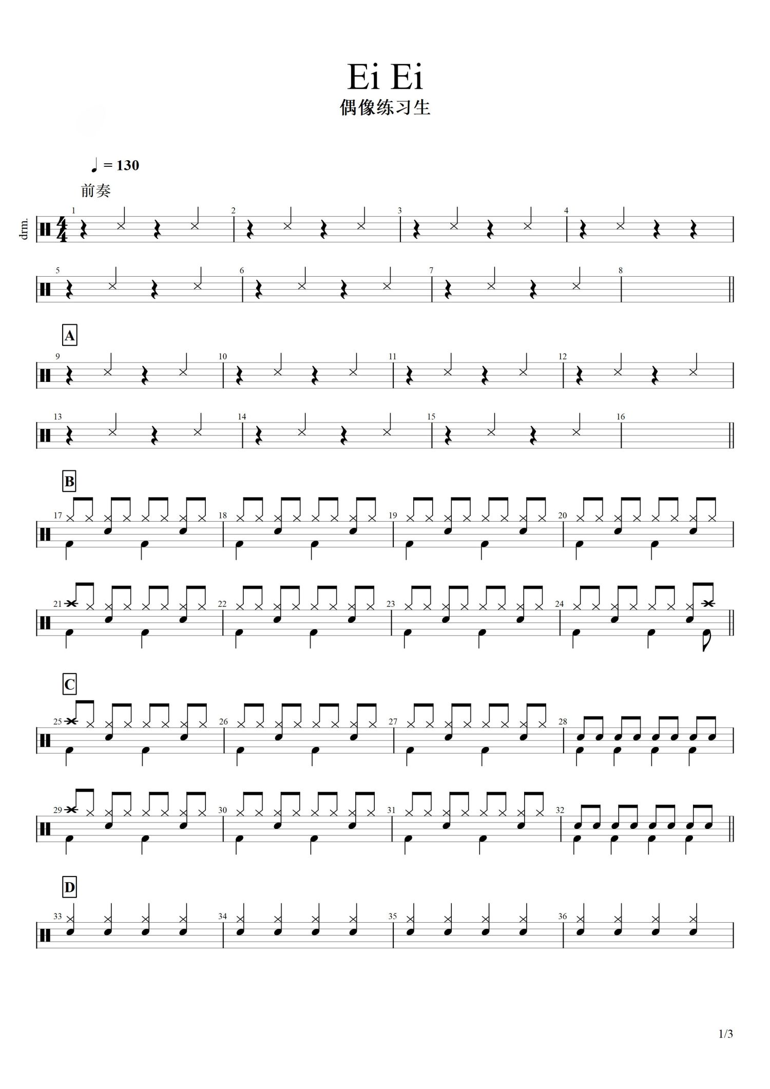 • Ei Ei鼓谱 - 偶像练习生 - 架子鼓谱第1张