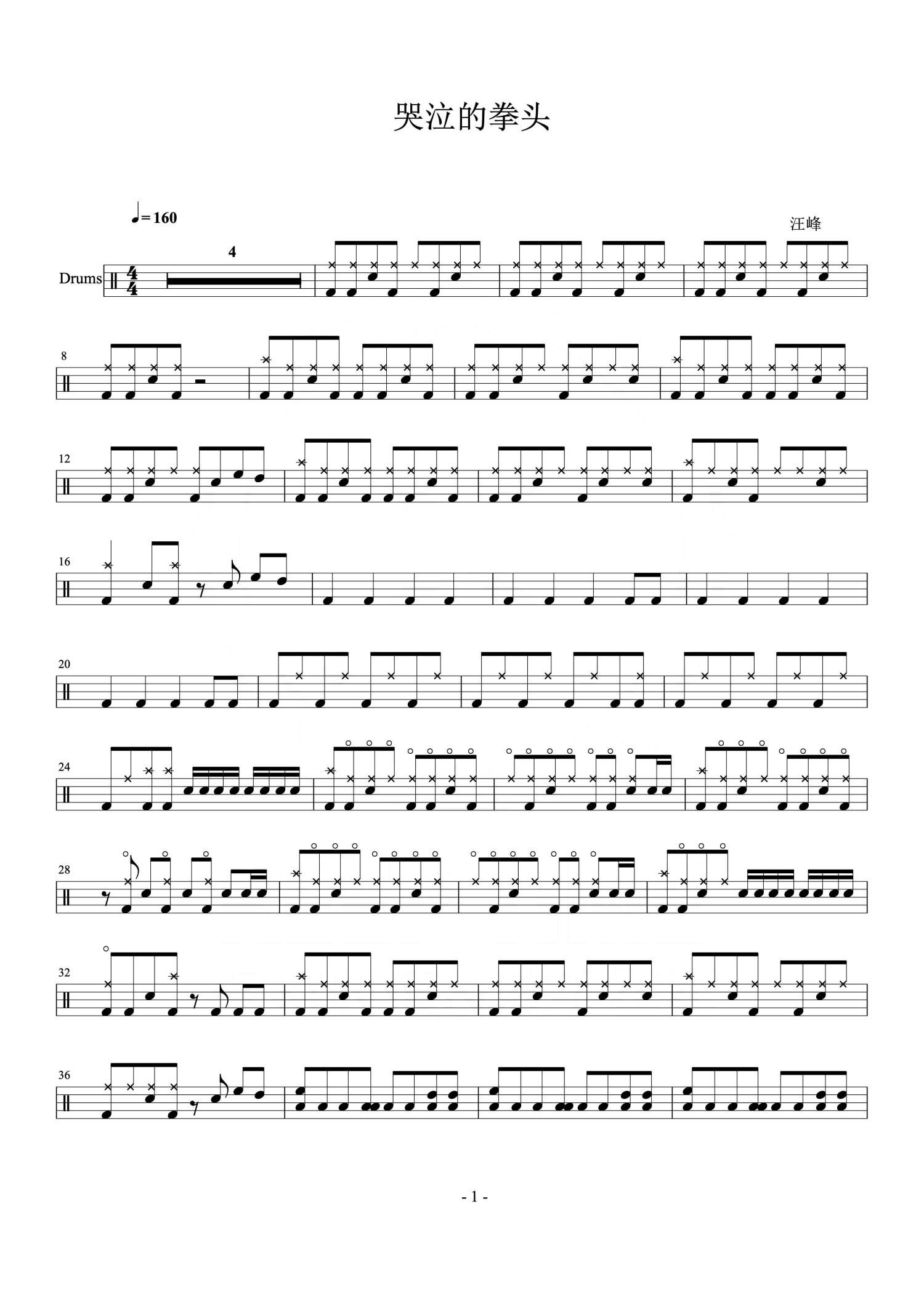 • 哭泣的拳头鼓谱 - 汪峰 - 架子鼓谱第1张