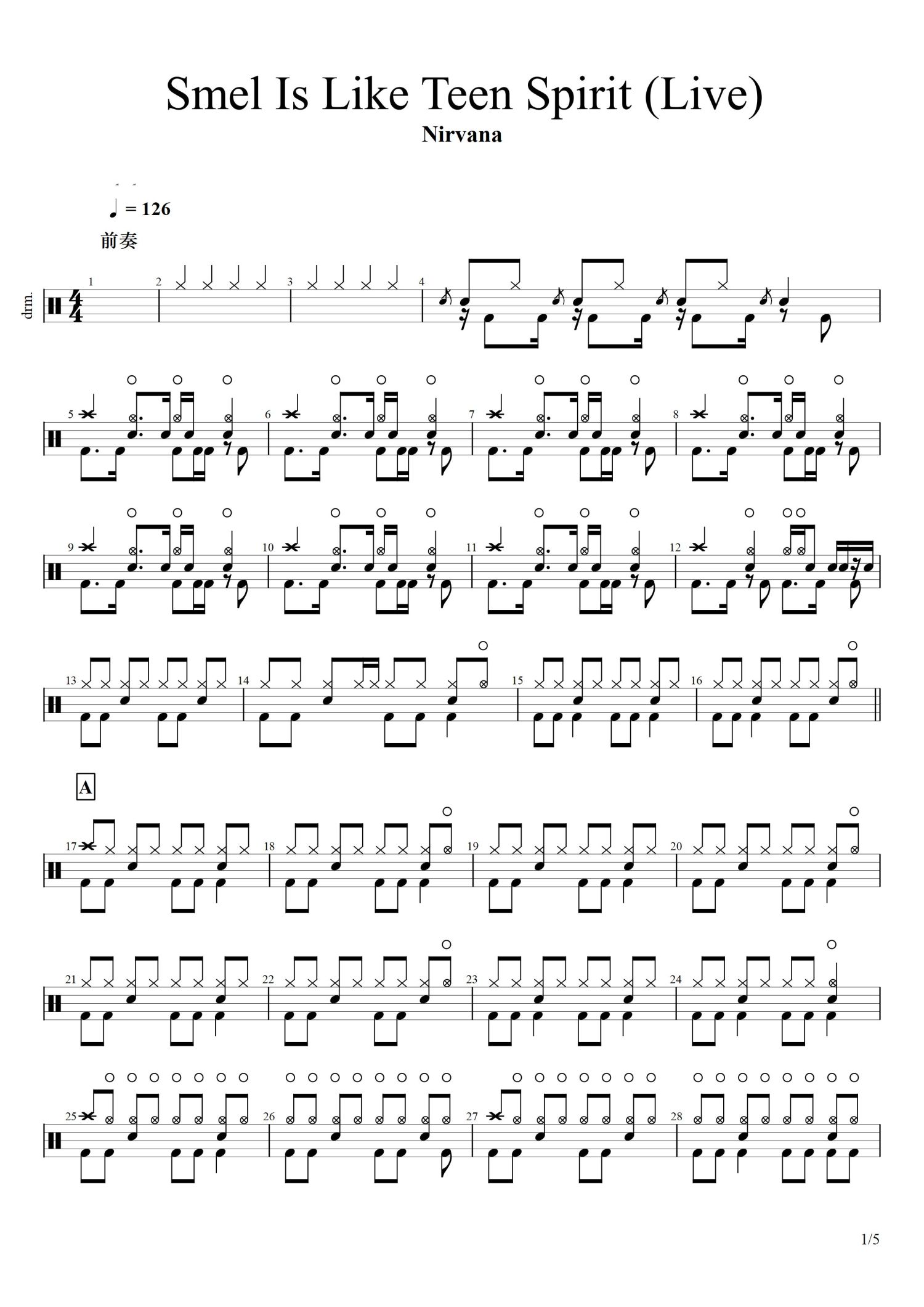 • Smells Like Teen Spirit鼓谱 - 涅槃乐队 - 架子鼓谱 - Live第1张