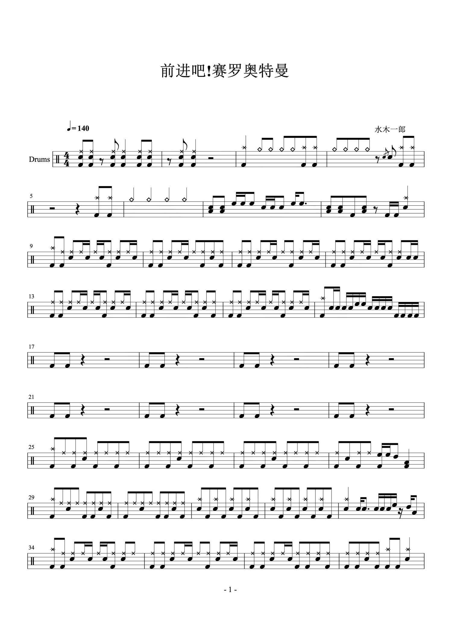 • 前进吧!赛罗奥特曼鼓谱 - 水木一郎 - 架子鼓谱第1张