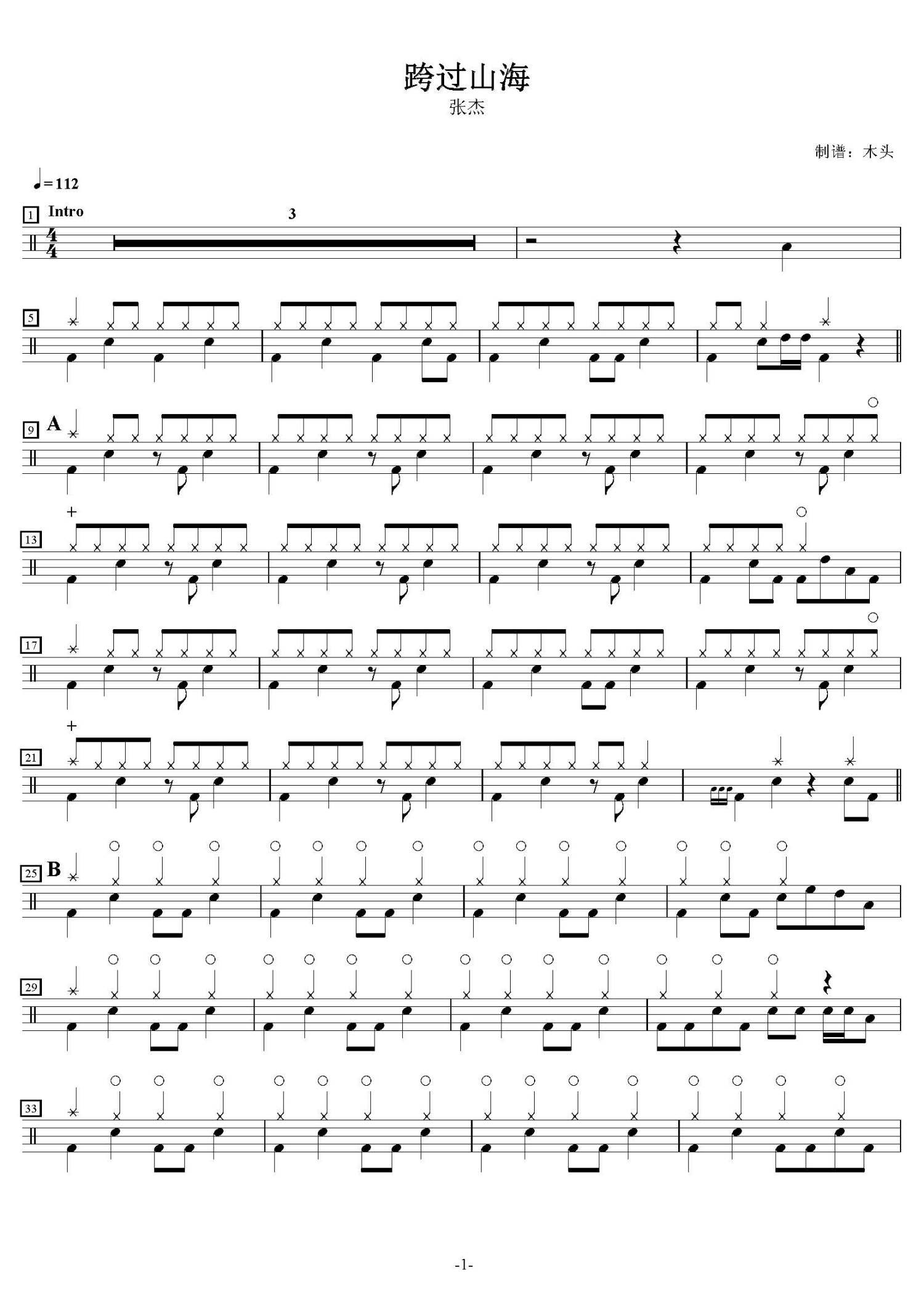 • 跨过山海鼓谱 - 张杰 - 架子鼓谱第1张