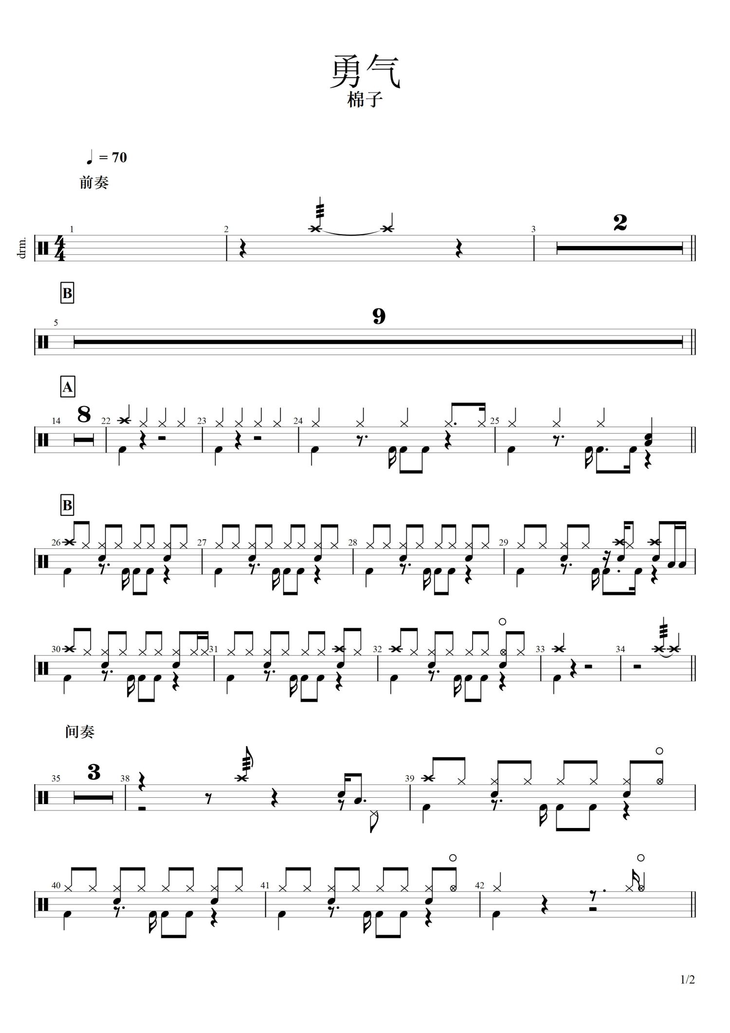 • 勇气鼓谱 - 棉子 - 架子鼓谱第1张