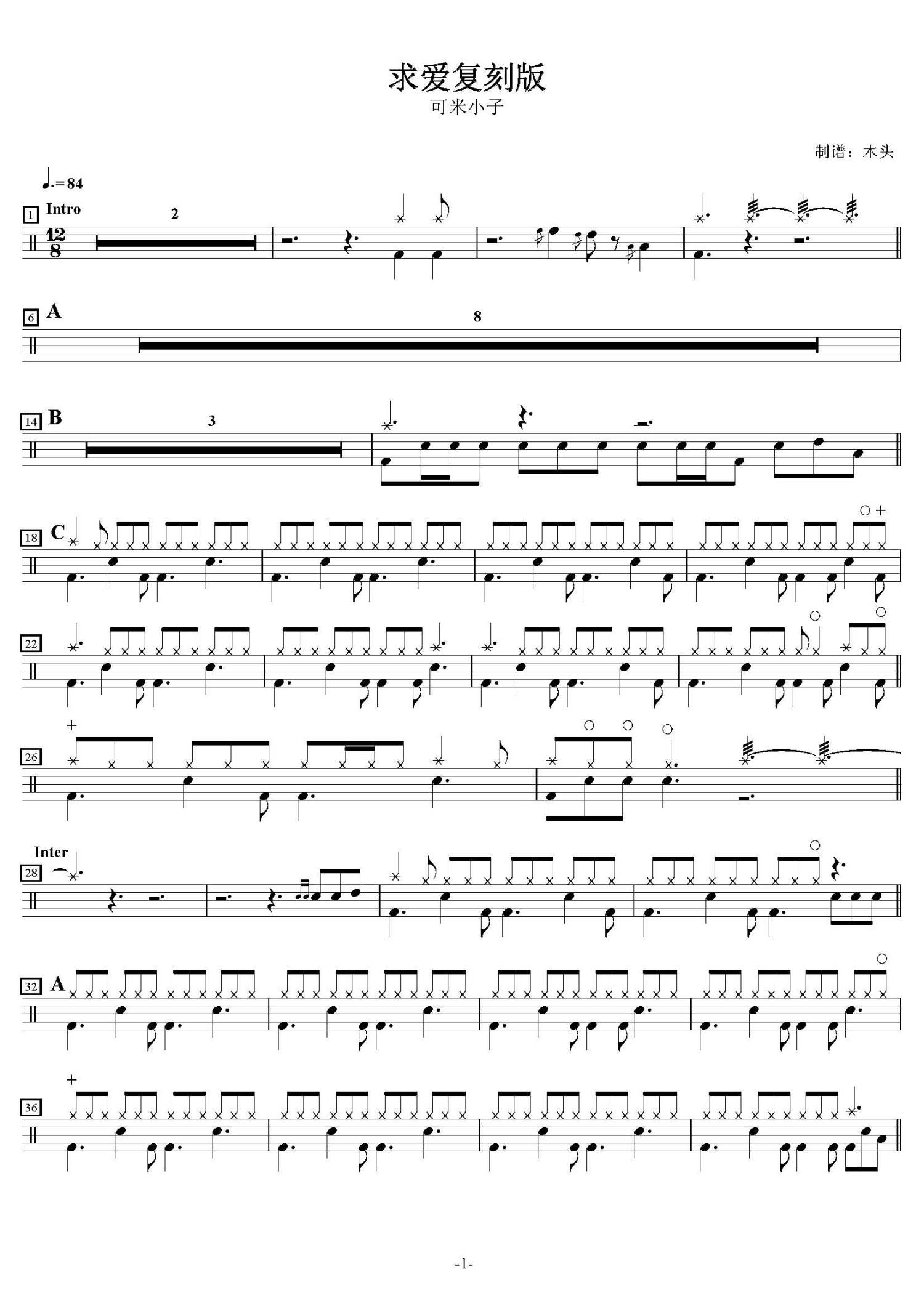 • 求爱复刻版鼓谱 - 可米小子 - 架子鼓谱第1张