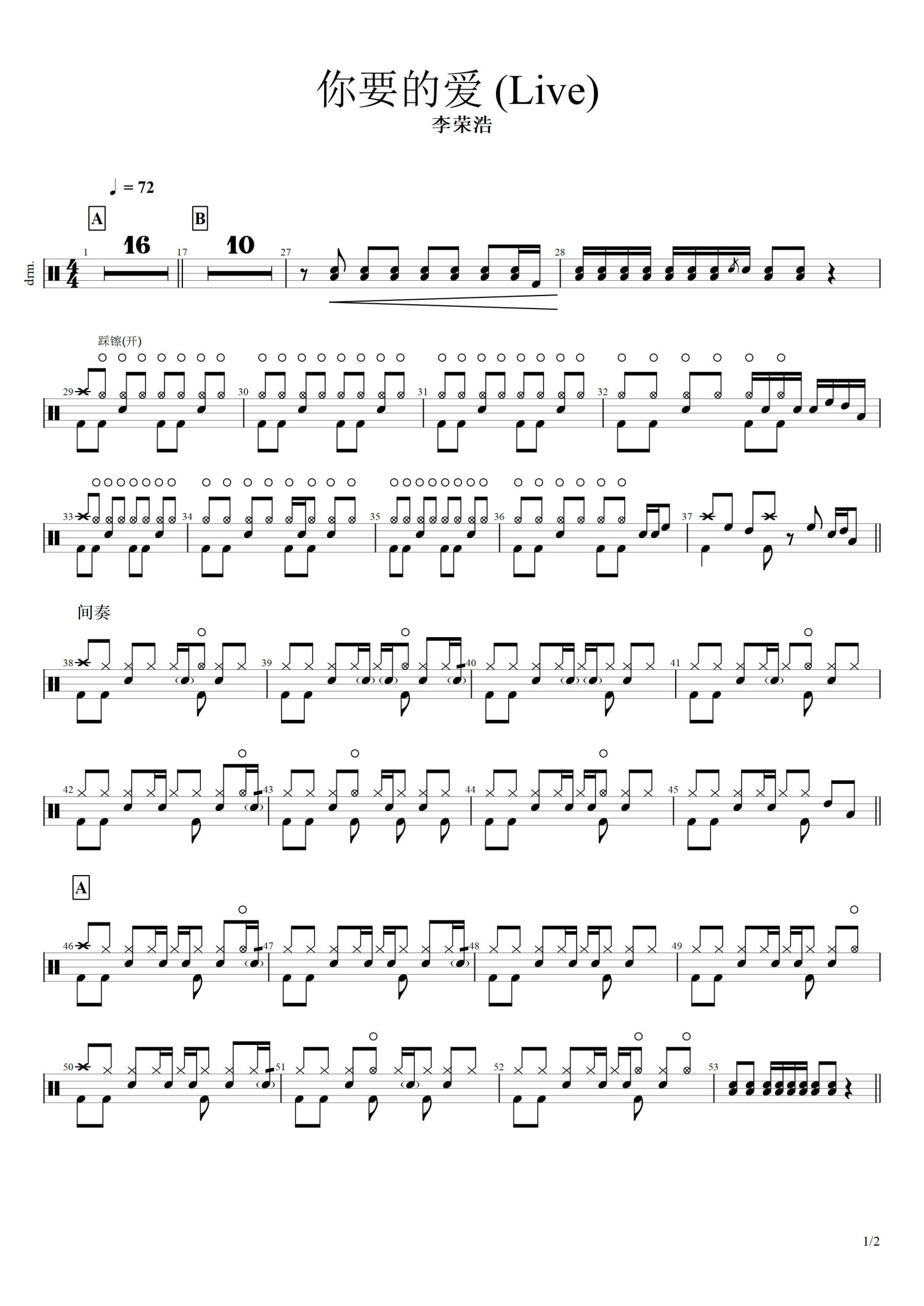 • 你要的爱鼓谱 - 李荣浩 - 架子鼓谱第1张