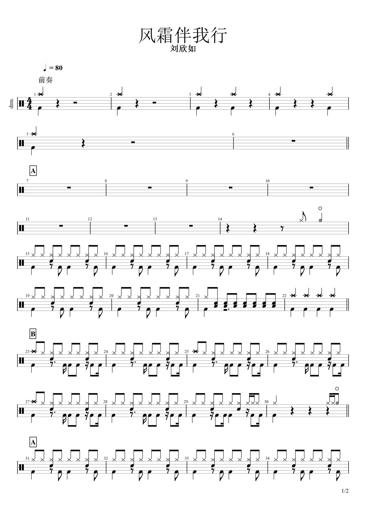 • 风霜伴我行鼓谱 - 刘欣如 - 架子鼓谱第1张