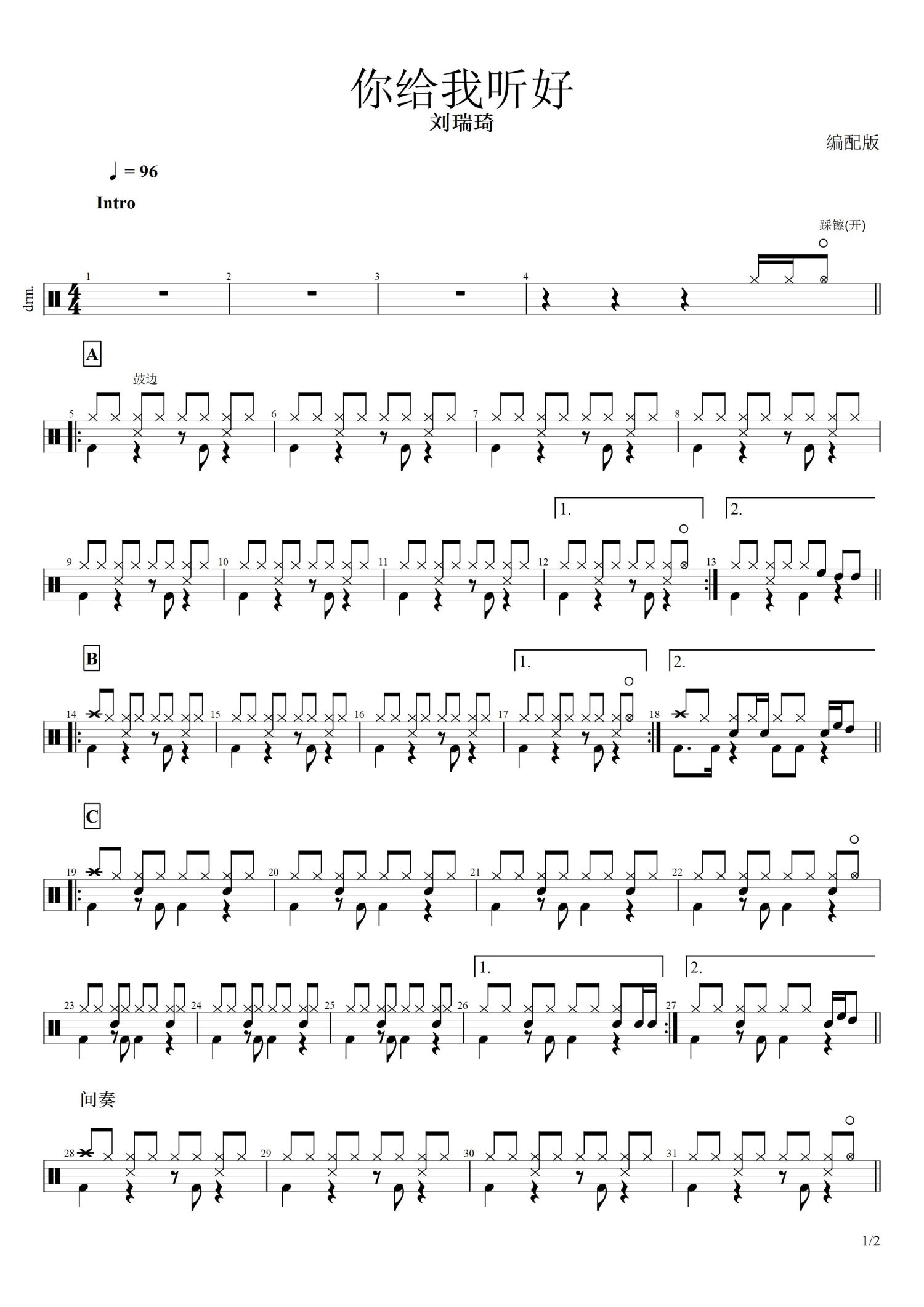 • 你给我听好鼓谱 - 刘瑞琦 - 架子鼓谱第1张
