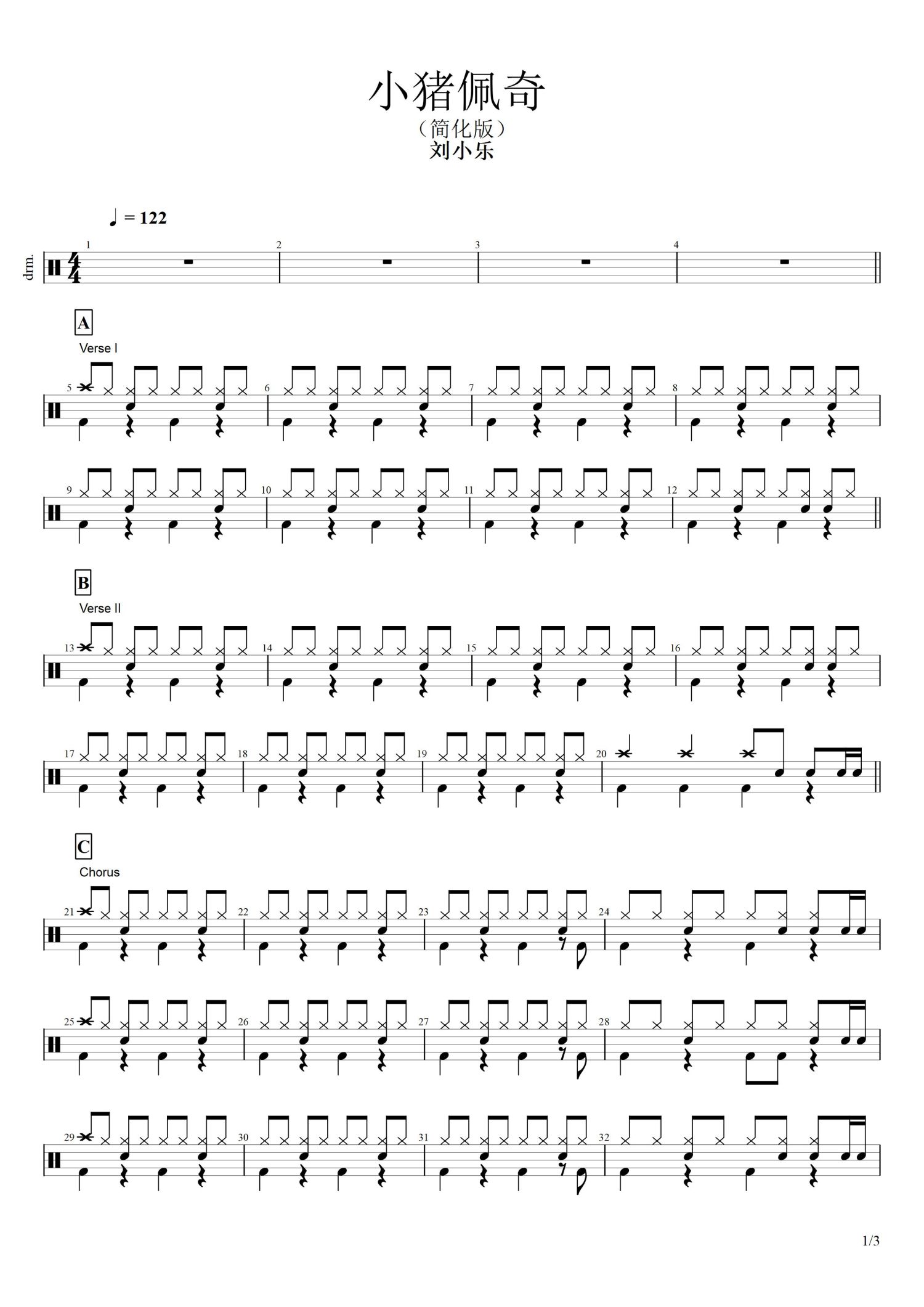 • 小猪佩奇鼓谱 - 刘小乐 - 架子鼓谱第1张