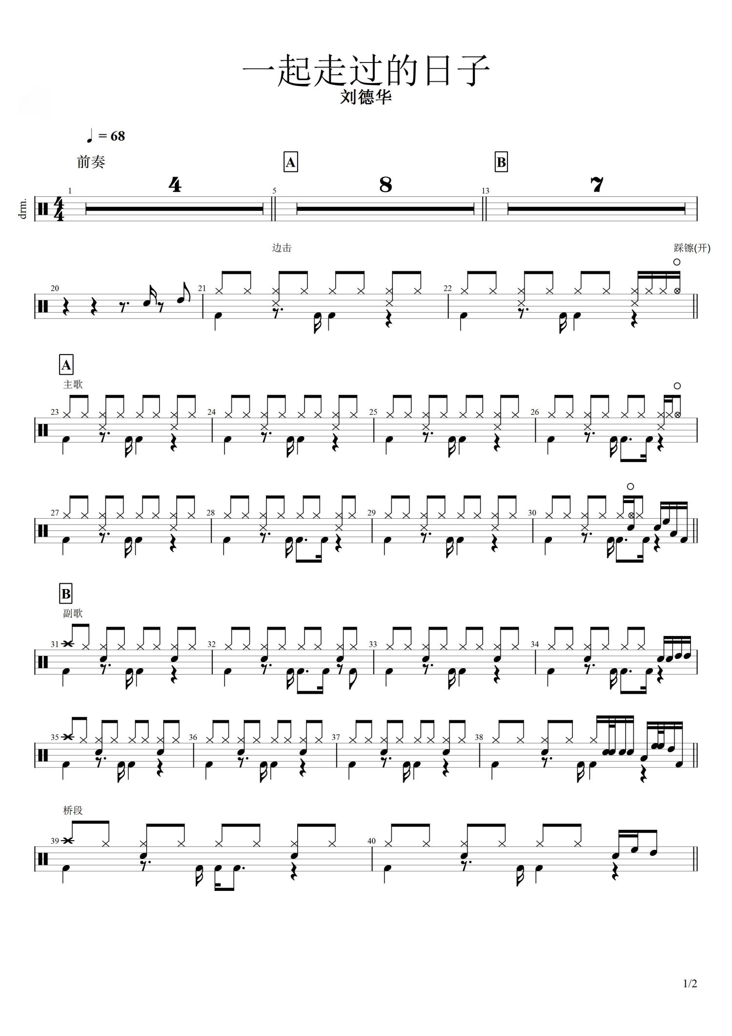 • 一起走过的日子鼓谱 - 刘德华 - 架子鼓谱第1张