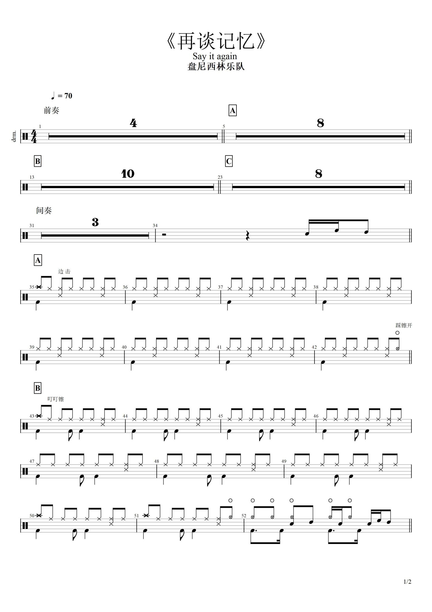 • 再谈记忆鼓谱 - 盘尼西林 - 架子鼓谱第1张