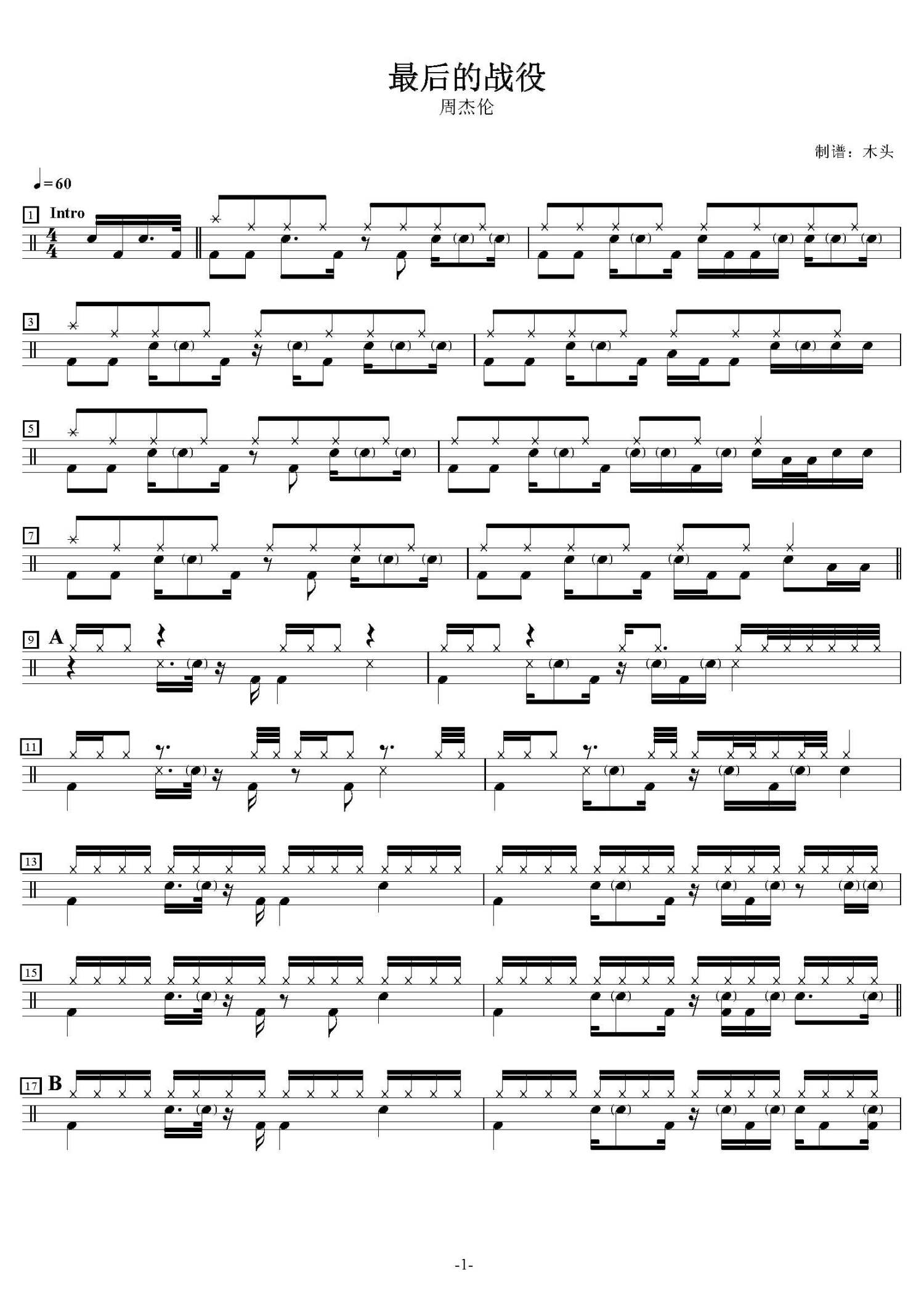 • 最后的战役鼓谱 - 周杰伦 - 架子鼓谱第1张