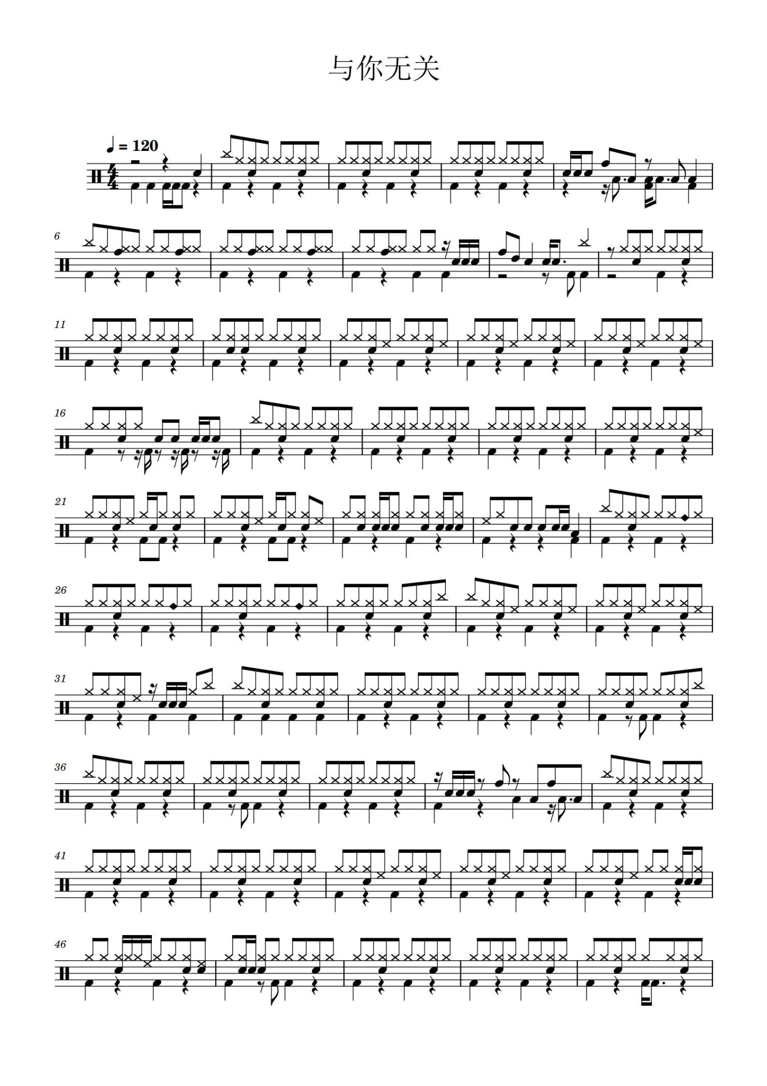 • 与你无关鼓谱 - 花姐 - 架子鼓谱第1张