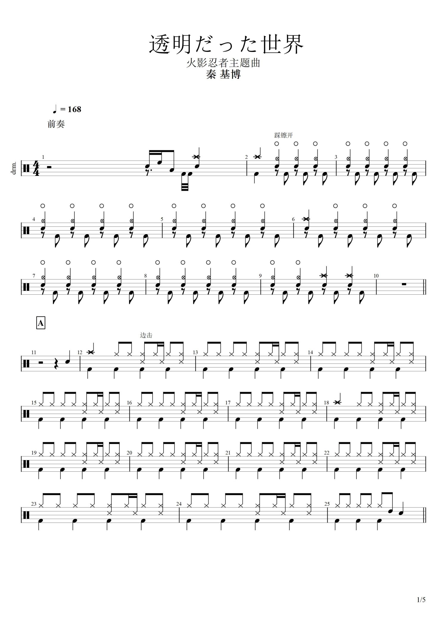 • 透明だった世界鼓谱 - 秦基博 - 架子鼓谱第1张