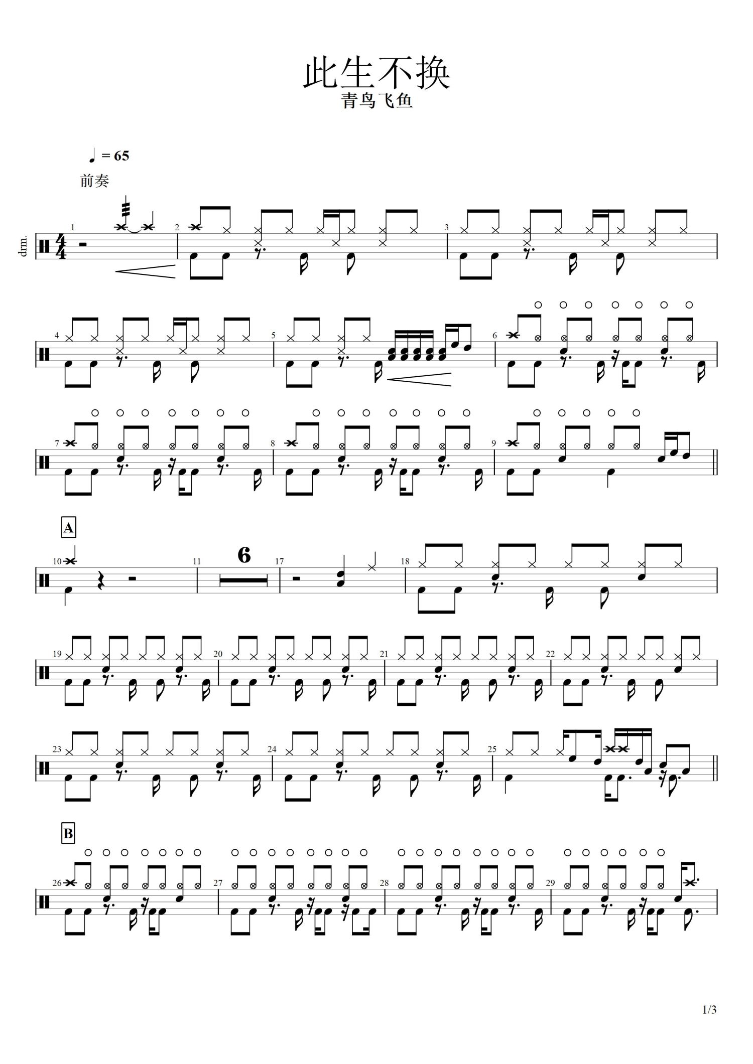 • 此生不换鼓谱 - 青鸟飞鱼 - 架子鼓谱第1张