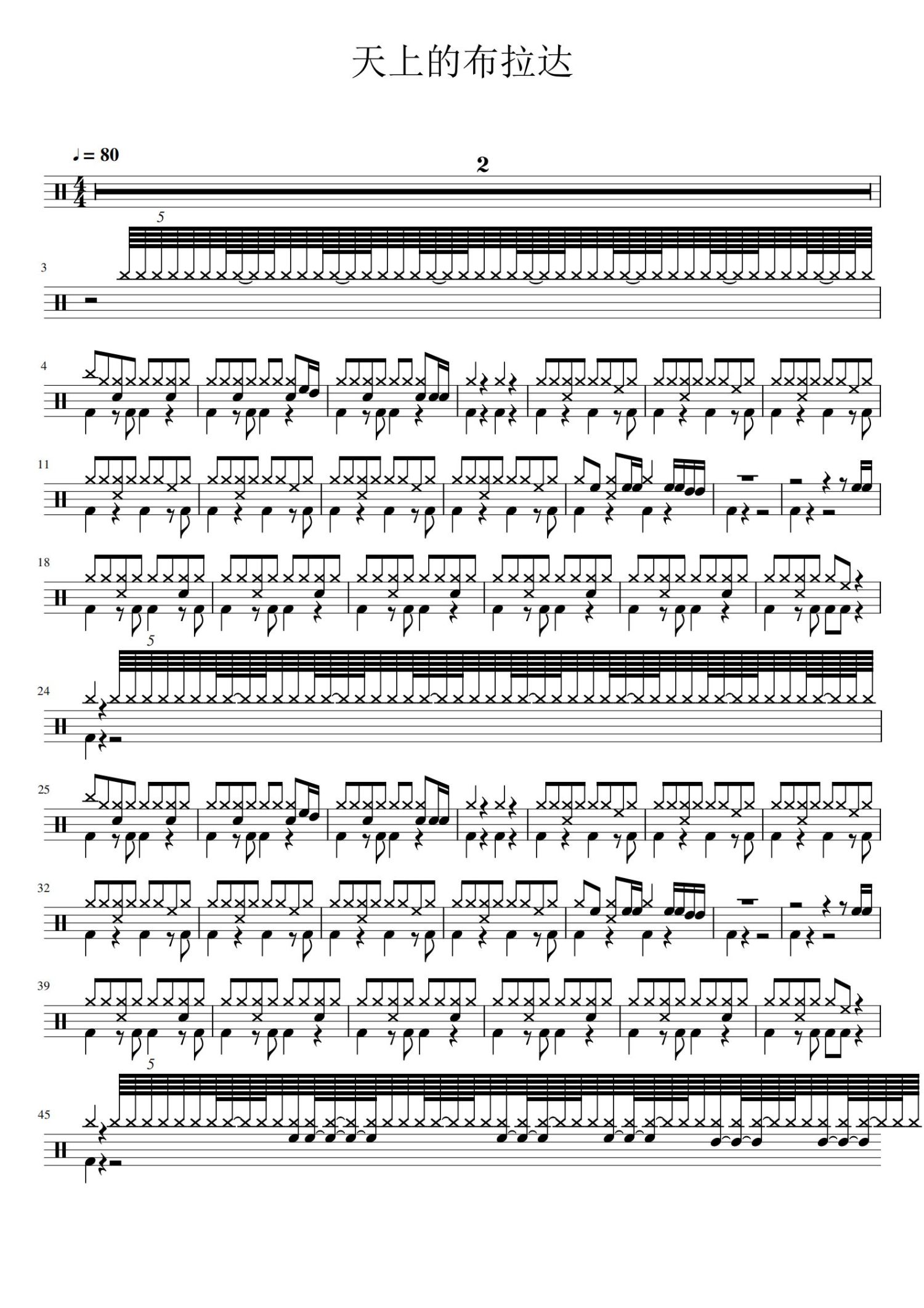 • 天上的布拉达鼓谱 - 儿歌 - 架子鼓谱第1张
