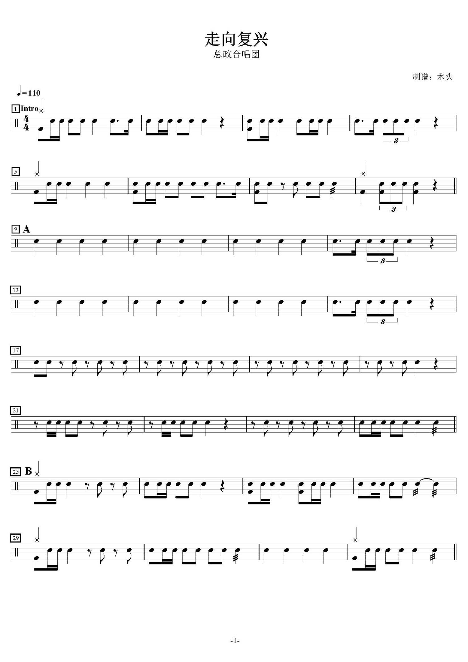 • 走向复兴鼓谱 - 总政合唱团 - 架子鼓谱第1张