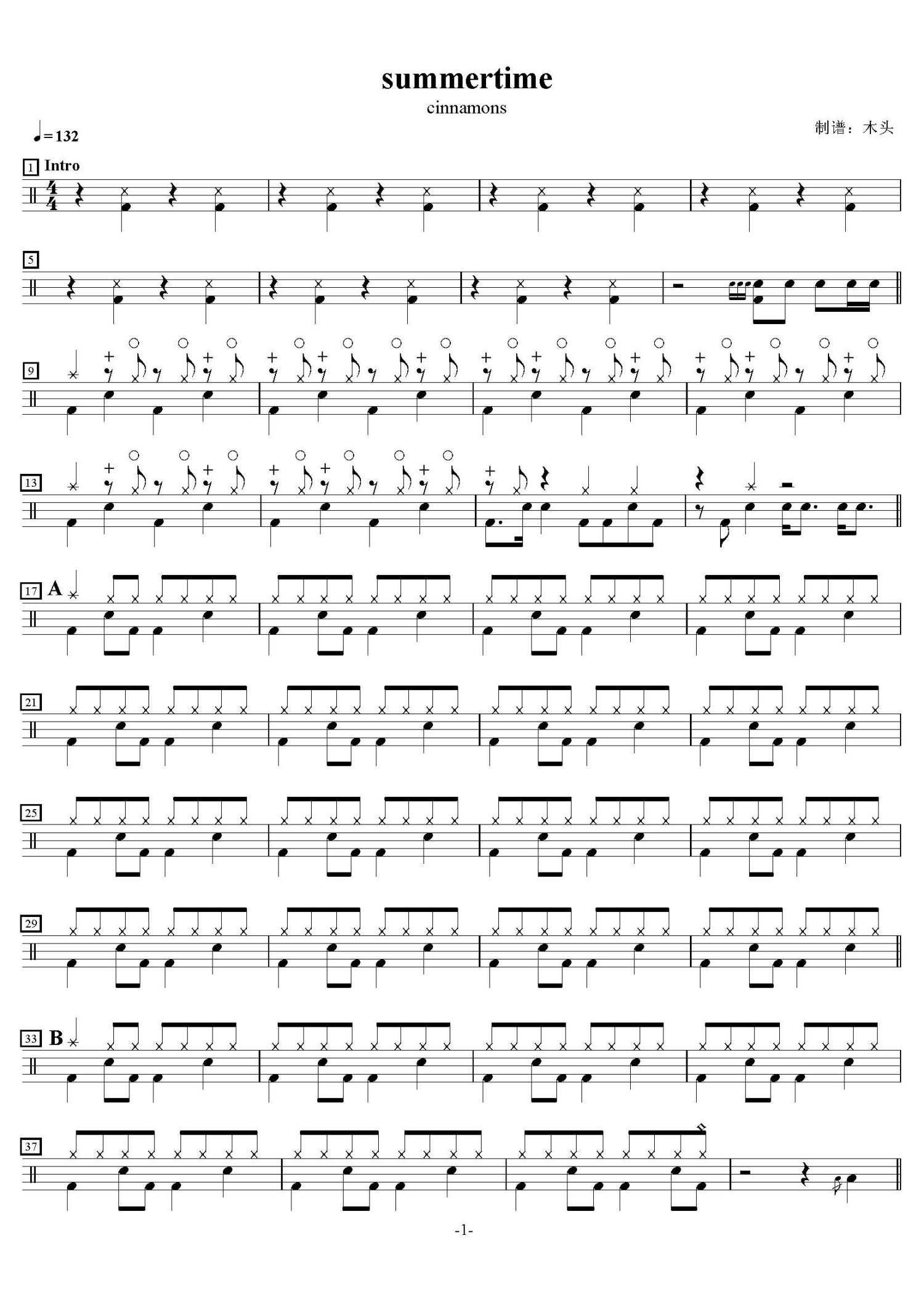 summertime鼓谱 - cinnamons - 架子鼓谱