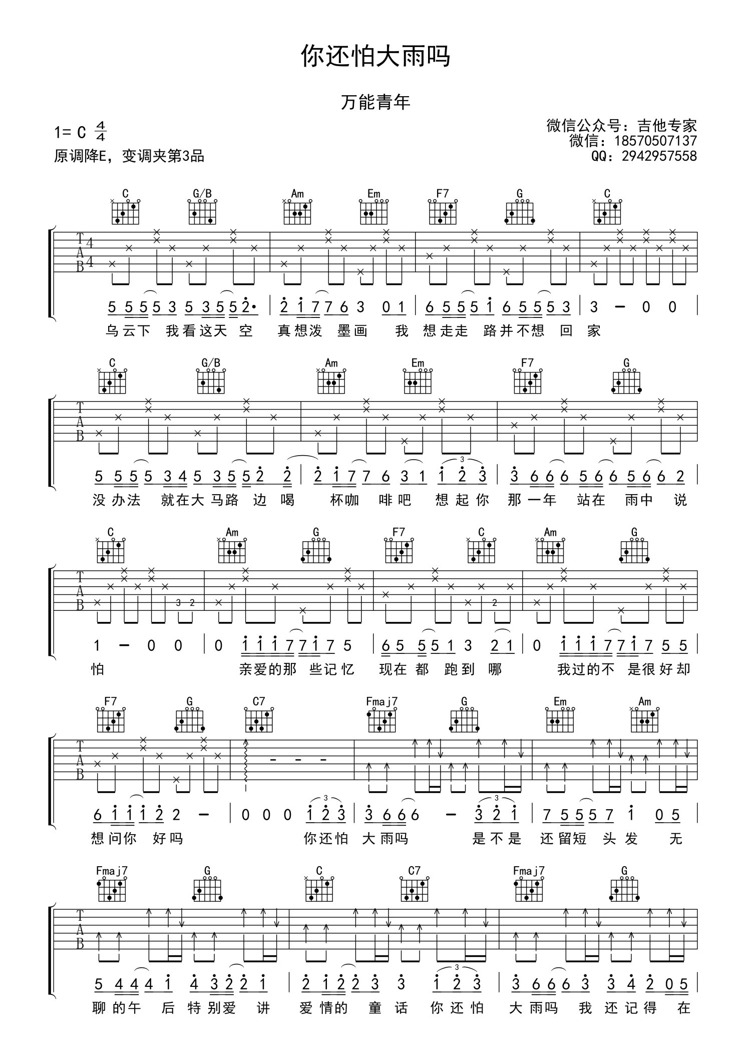 • 你还怕大雨吗吉他谱 - 万能青年 - C调吉他弹唱谱第1张