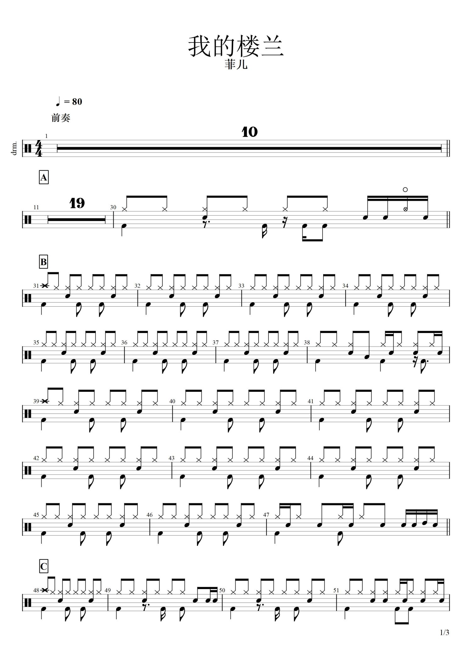 • 我的楼兰鼓谱 - 菲儿 - 架子鼓谱第1张