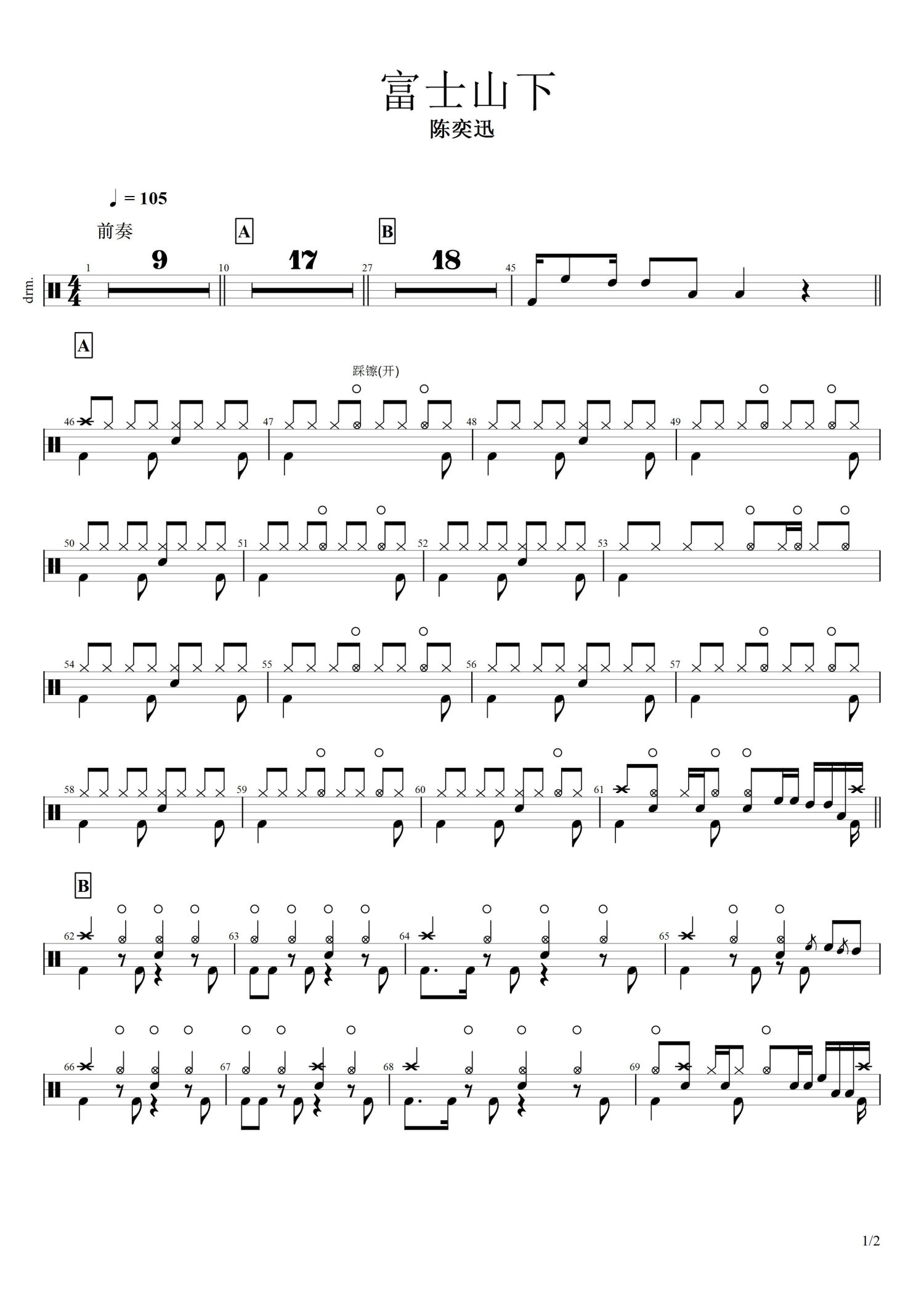 • 富士山下鼓谱 - 陈奕迅 - 架子鼓谱第1张