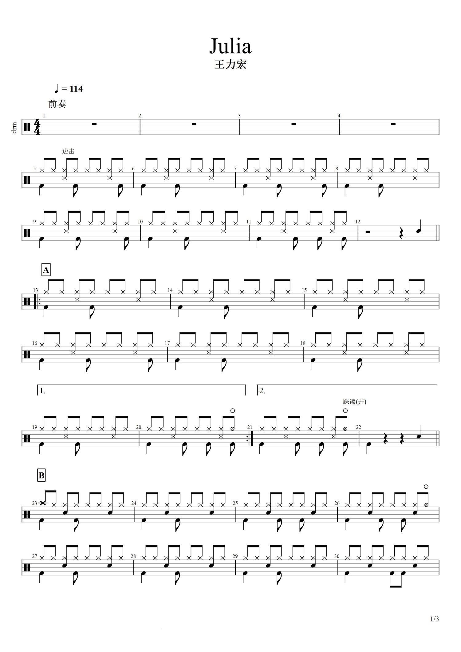 • Julia鼓谱 - 王力宏 - 架子鼓谱第1张