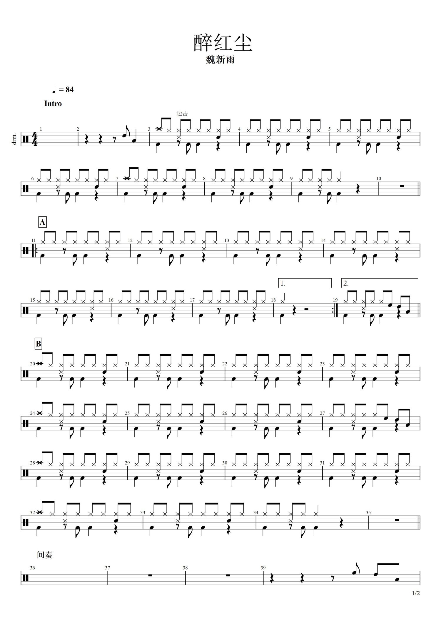 • 醉红尘鼓谱 - 魏新雨 - 架子鼓谱第1张