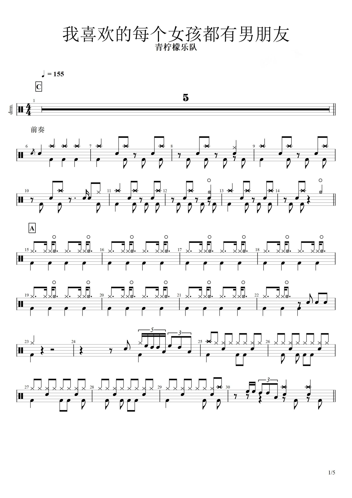• 我喜欢的每个女孩都有男朋友鼓谱 - 青柠檬乐队 - 架子鼓谱第1张