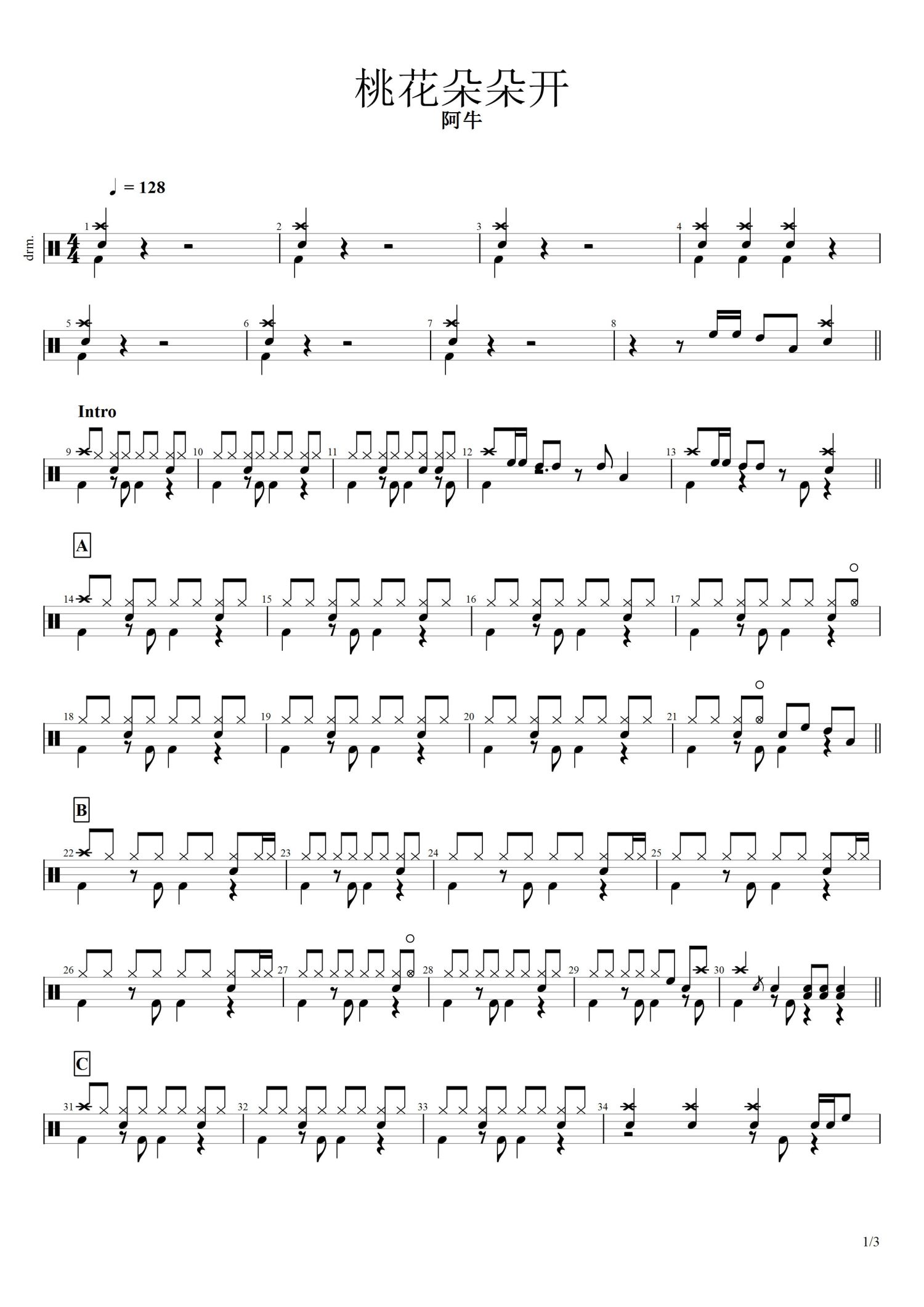 • 桃花朵朵开鼓谱 - 阿牛 - 架子鼓谱第1张