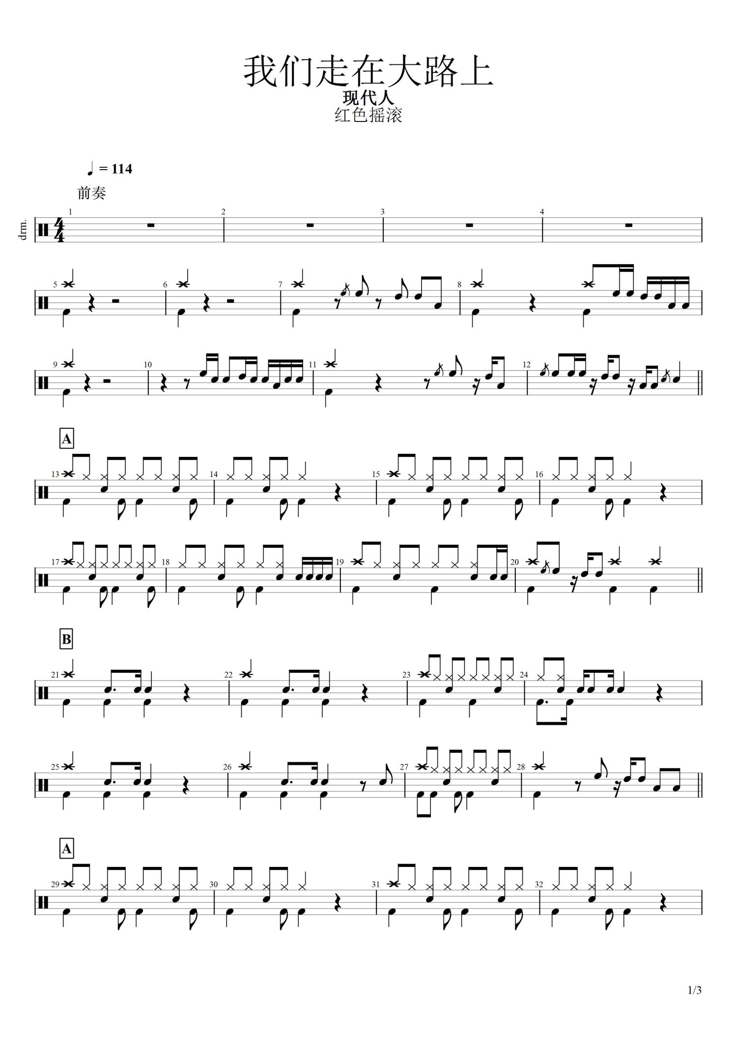 • 我们走在大路上鼓谱 - 现代人 - 架子鼓谱第1张