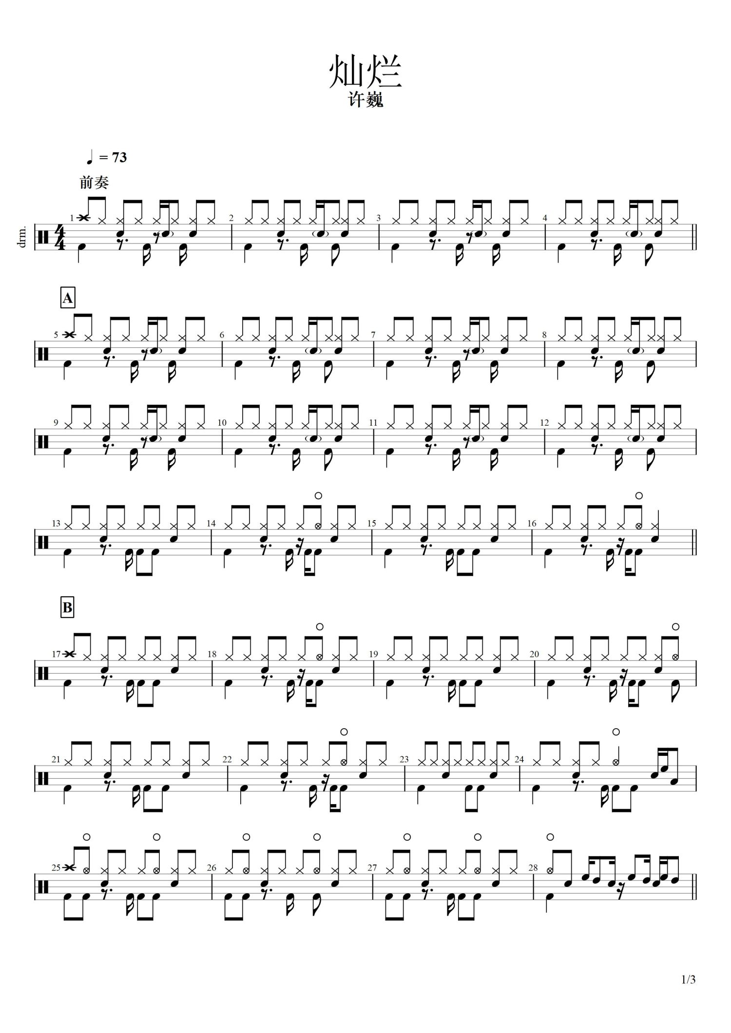• 灿烂鼓谱 - 许巍 - 架子鼓谱第1张