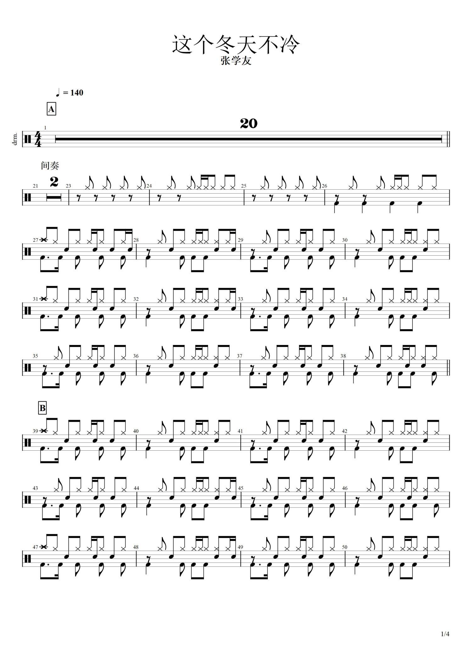 • 这个冬天不冷鼓谱 - 张学友 - 架子鼓谱第1张